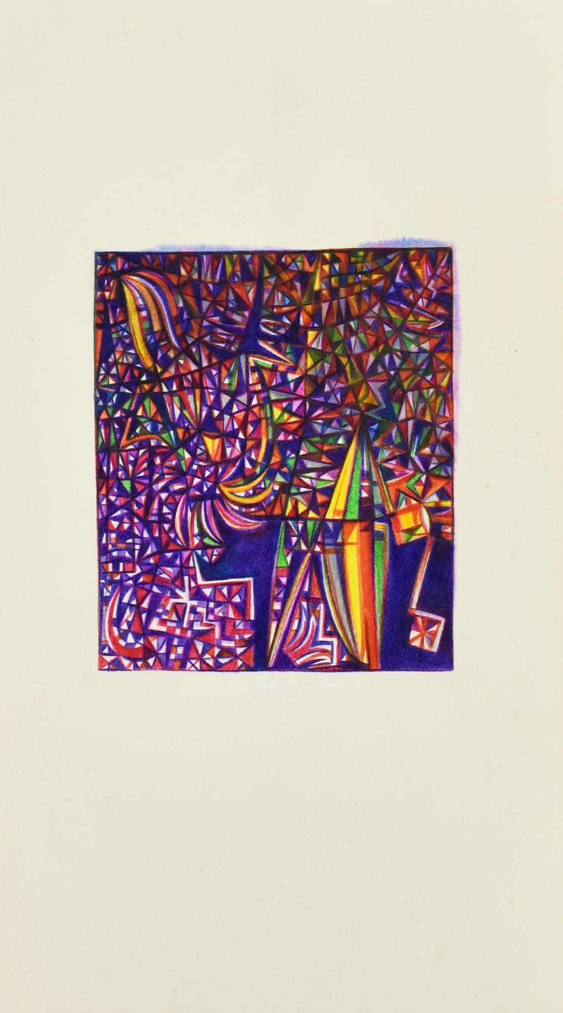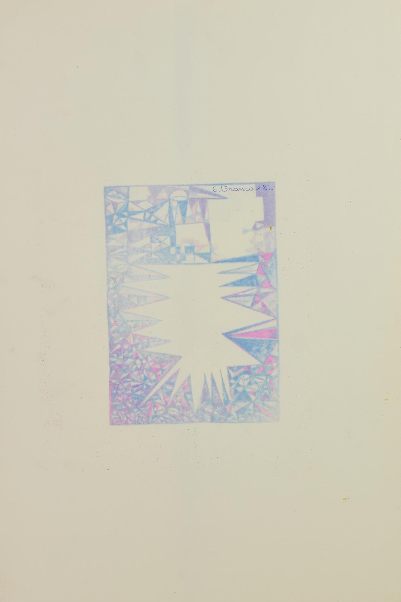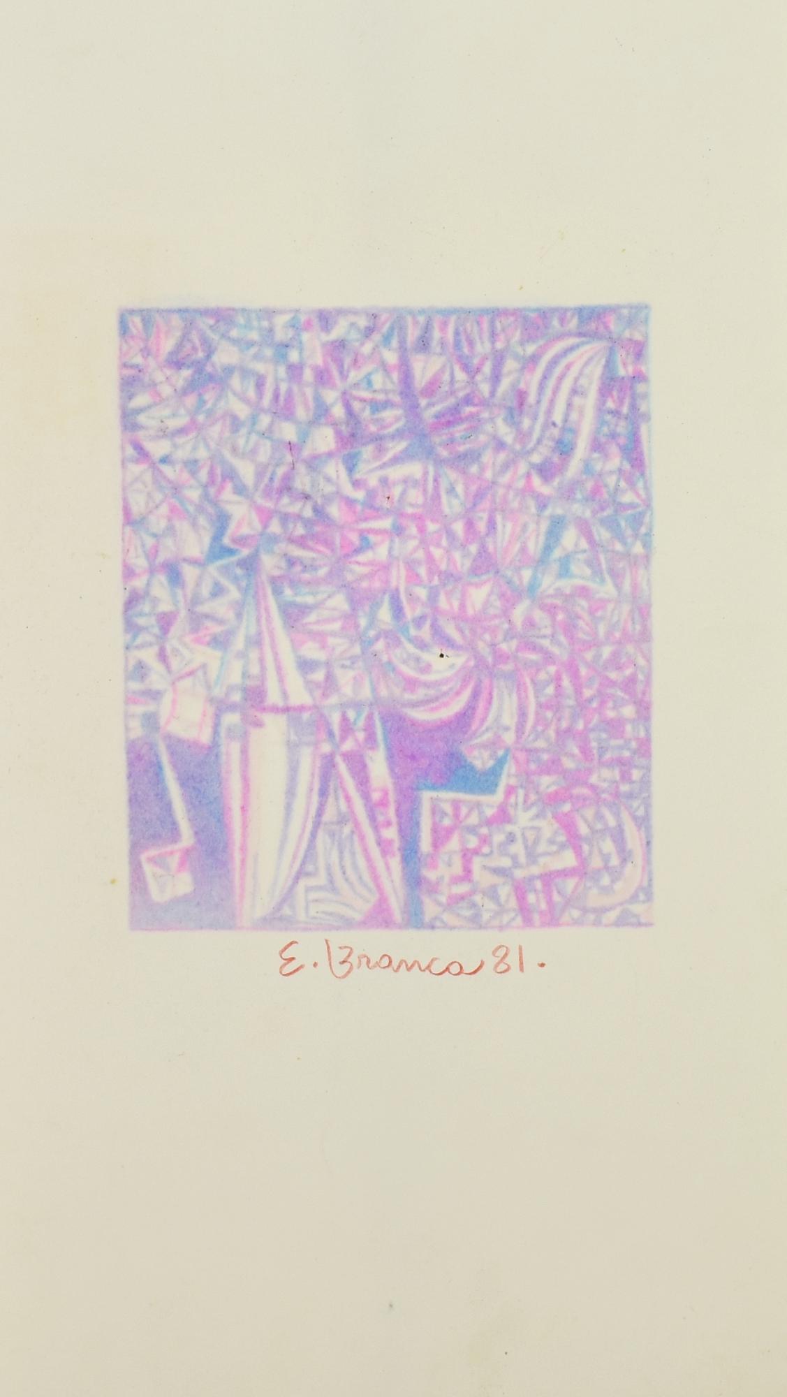 Enzo Branca COMPOSIZIONI,1981 -matite colorate su carta, cm 33x19 sul retro:...