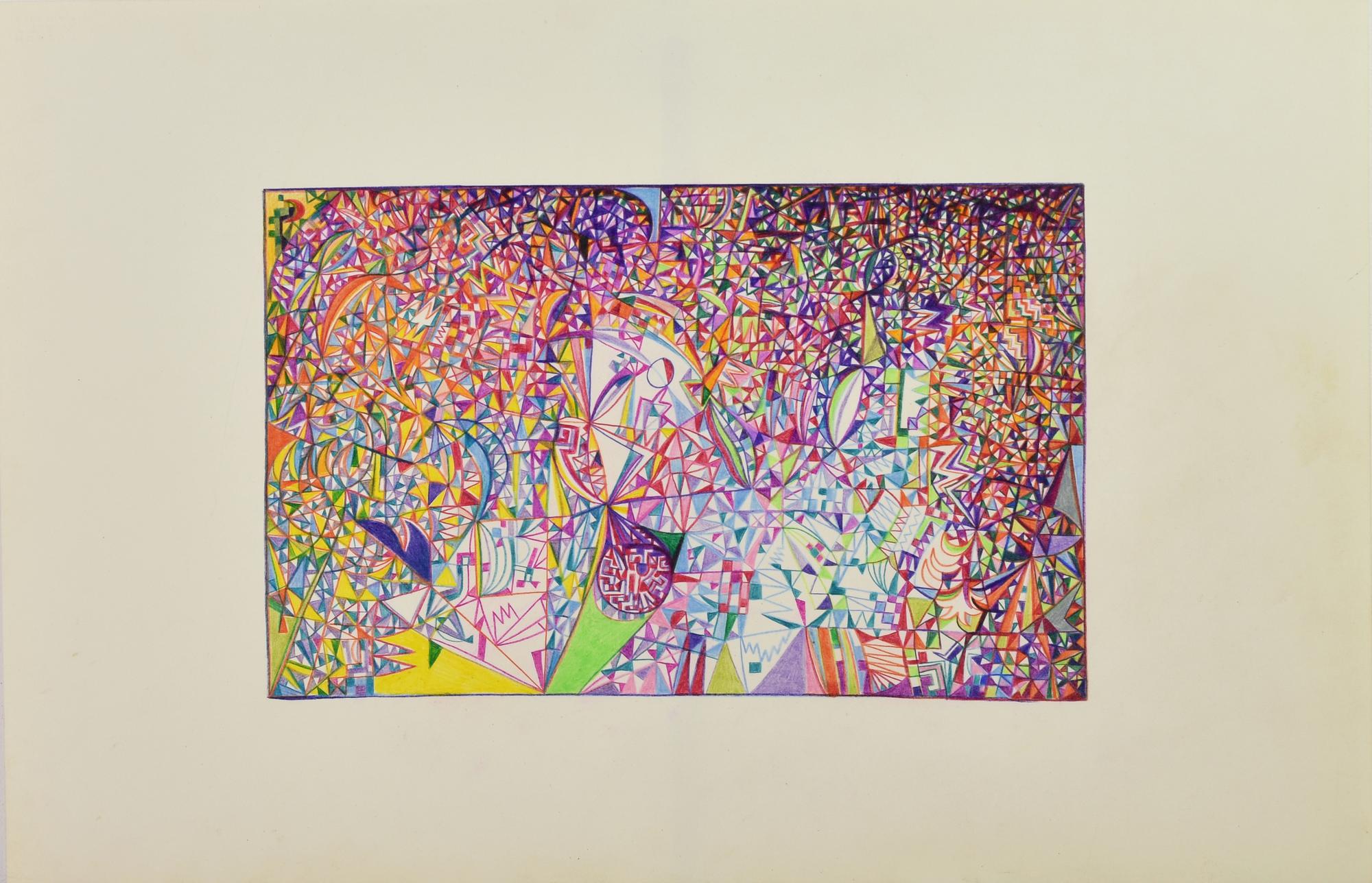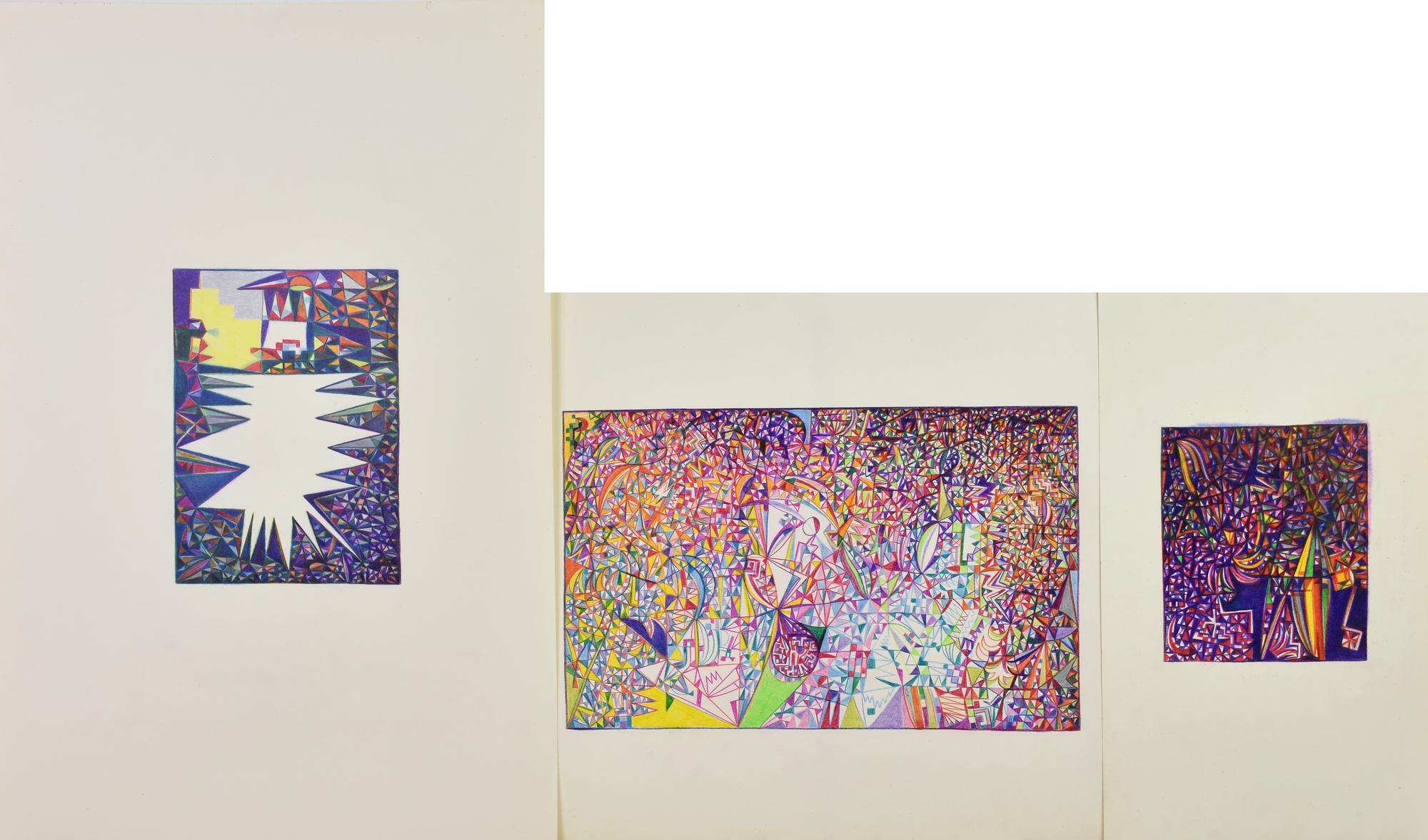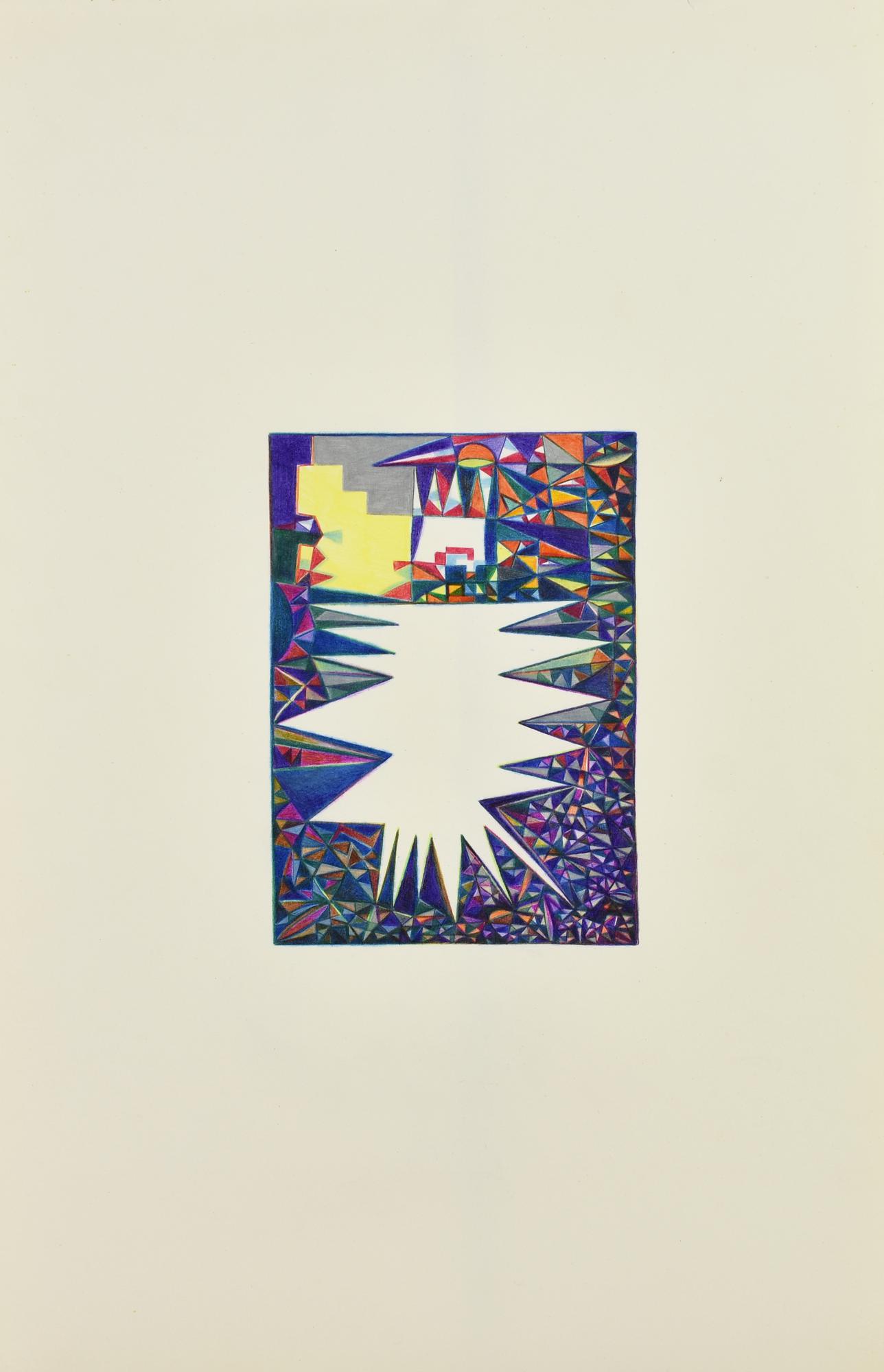 Enzo Branca COMPOSIZIONI,1981 -matite colorate su carta, cm 33x19 sul retro:...
