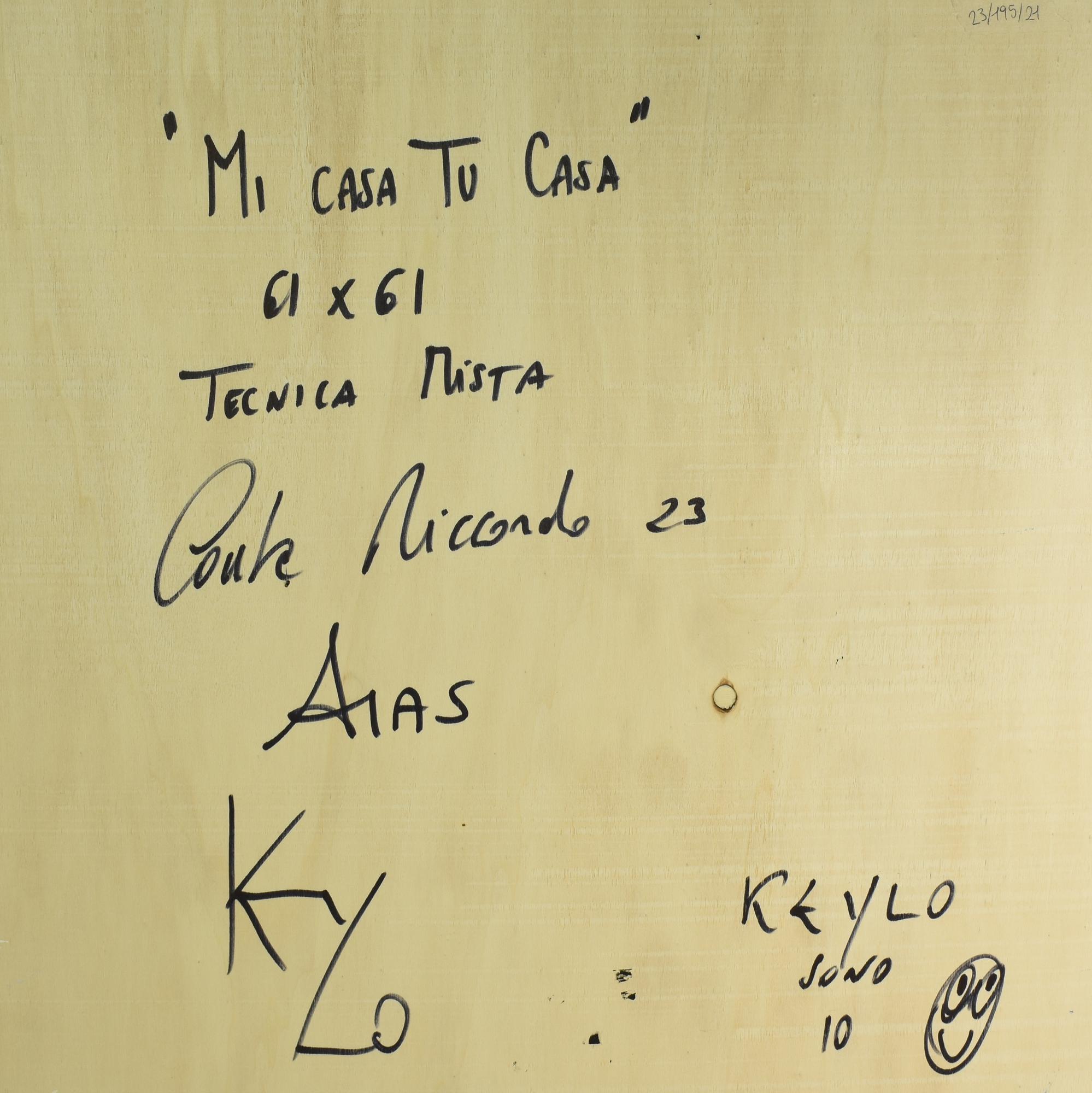 Keylo MI CASA TU CASA, 2023 tecnica mista su tavola, cm 61x61 firma e data...