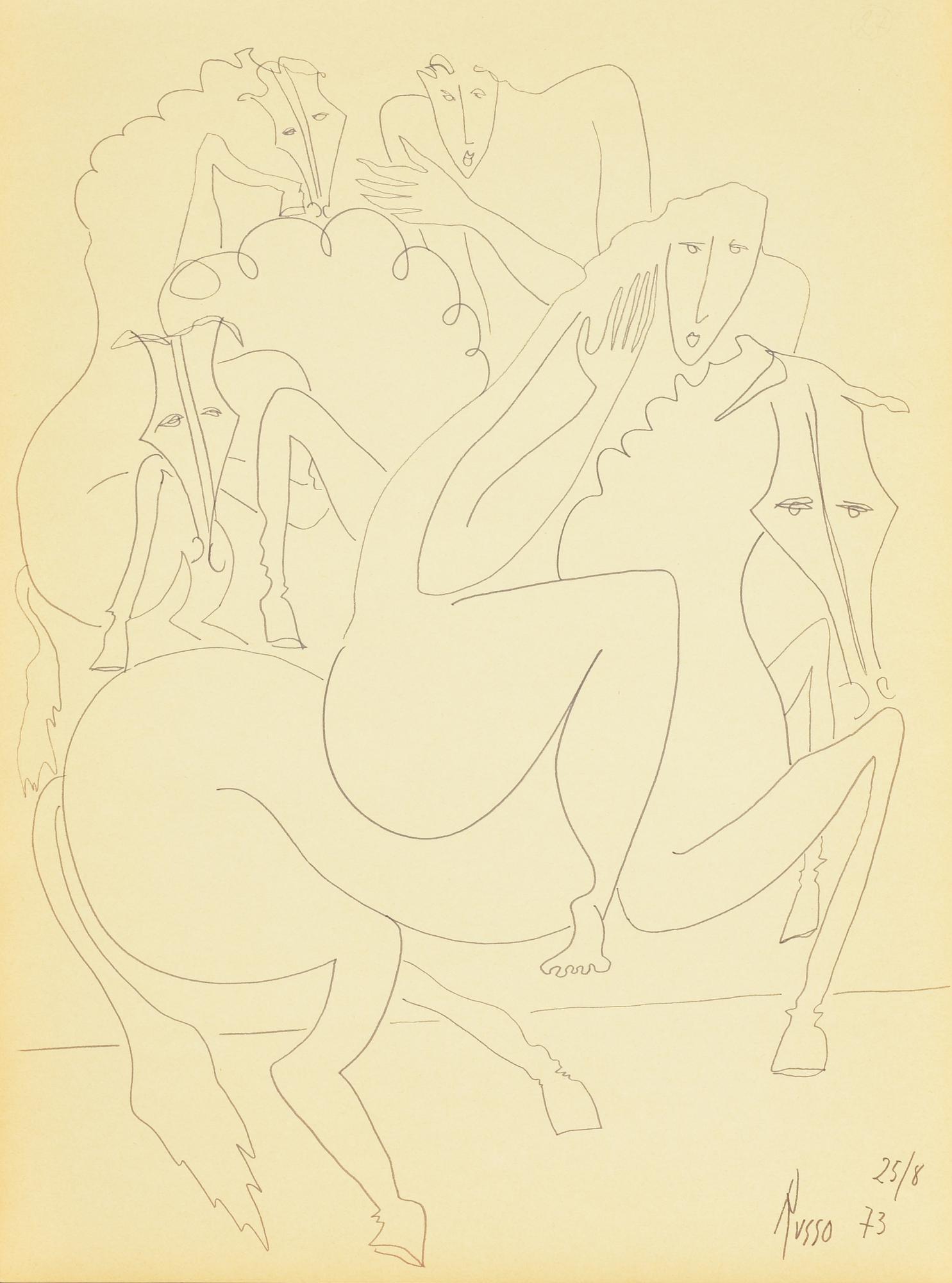 Lotto 41 | Russo CAVALLI pennarello su carta, cm 40x30 firma e data eseguito nel 1973