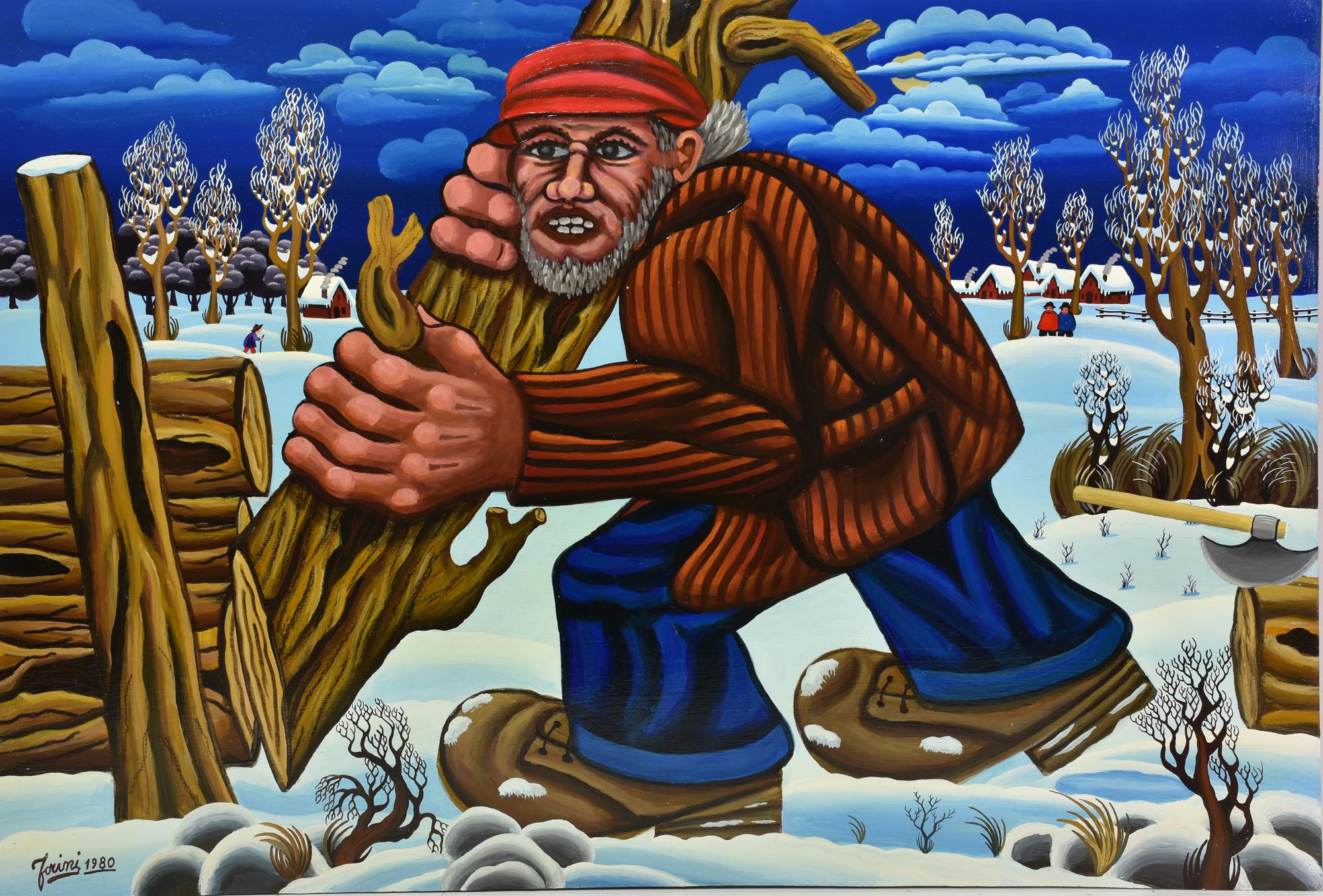 Turiddo Forini IL BOSCAIOLO, 1980 olio su faesite, cm 70x100 firma e data sul...