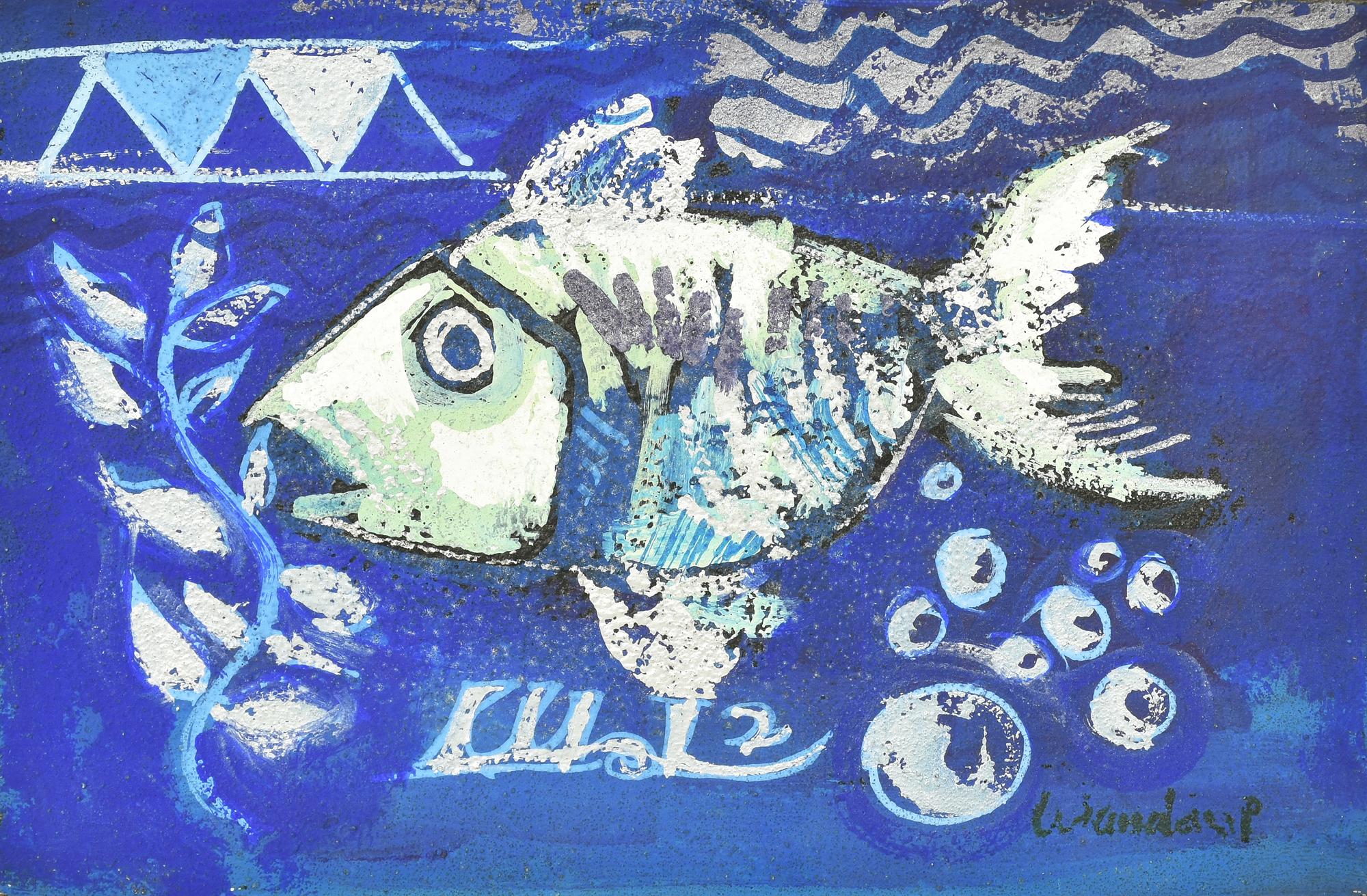 Lotto 71 | Mohamed Wandavi PESCE tecnica mista su tela, cm 20x30 firma sul retro: firma...