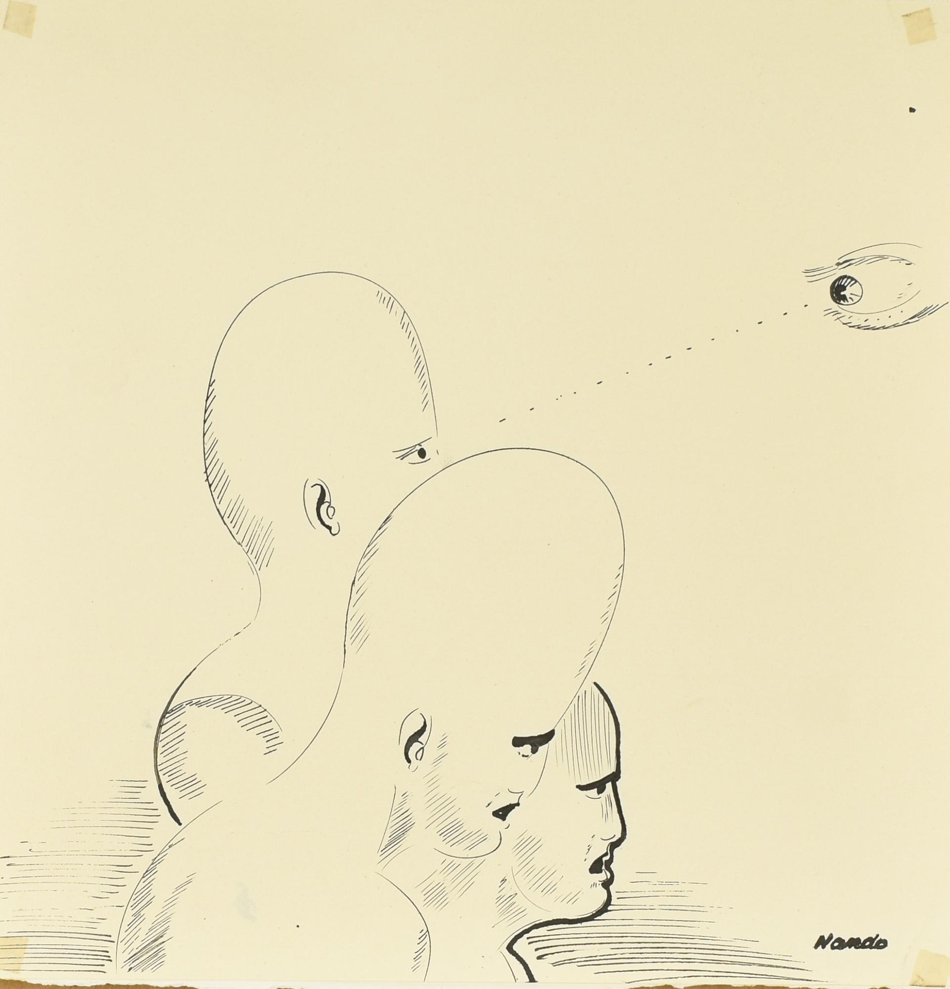 Nando VOLTI china su carta, cm 35,5x35 firma l'opera presenta tracce di...