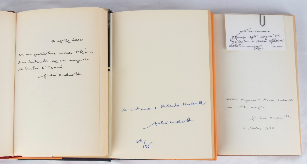 I volumi autografati sono "A ogni morte di Papa", "De Prima Re Publica", "Piccola storia di Roma" tutti scritti dal Senatore Giulio Andreotti.