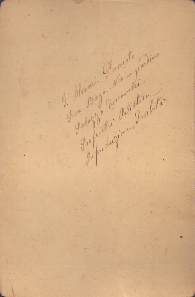 Foto originale Alinari montata su cartoncino formato gabinetto, che ritrae Giuseppe Mazzini nel suo letto di morte, ormai deceduto. Il cartoncino al retro porta la firma del fotografo, scritta autografa ad inchiostro nero "G.Alinari Premiato - Pisa - Palazzo Toscanelli - Proprietà Artistica Riproduzione Proibita".