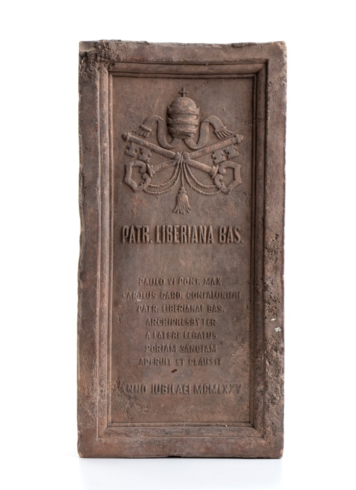 Mattonella commemorativa per apertura e chiusura della porta santa di Pio VI. Anno giubilare MCMLXXV.