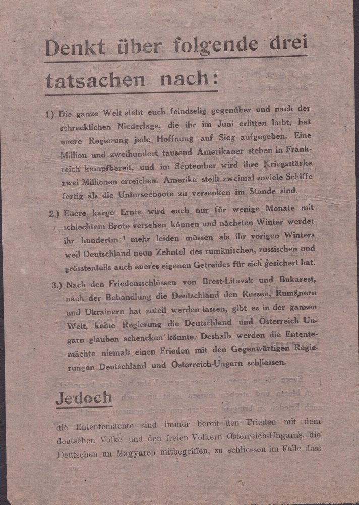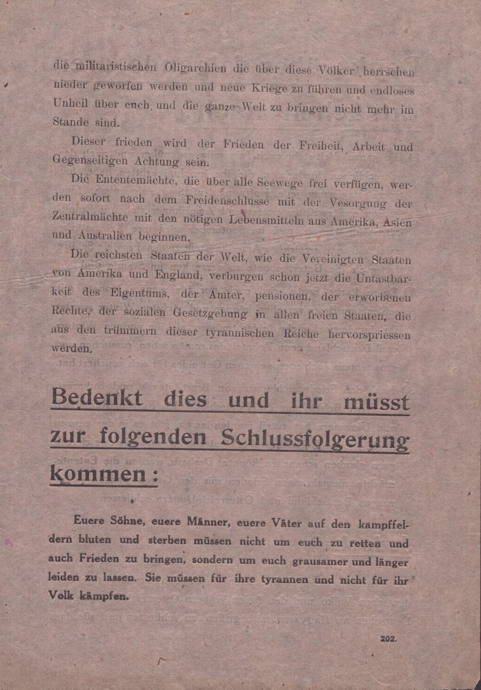 Prima Guerra Mondiale , volantino "Denkt Uber Folgende Drei..."