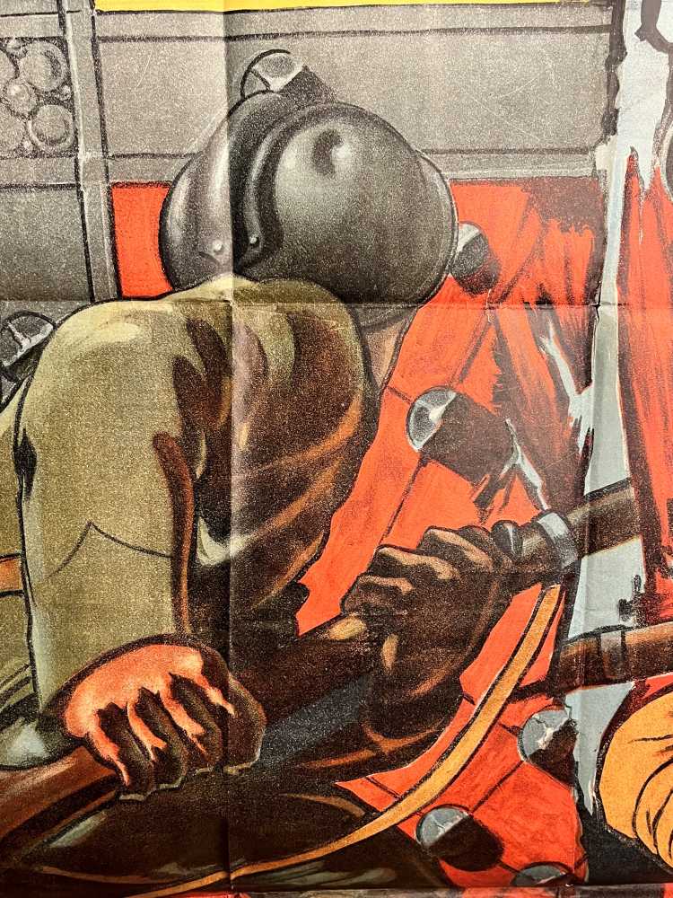 Manifesto originale stampa offset litografico, propaganda Prima Guerra Mondiale dal titolo "COME FU APERTA LA PORTA DELLA PACE" disegnato da Alberto Cecconi nel 1918, firmato in basso a sinistra. Evidenti e chiare allusioni erotiche, all'apertura e alla penetrazione nelle difese nemiche austro ungariche. Due soldati dell'alleanza europea, un italiano ed un inglese, si scagliano alla baionetta contro la porta del nemico, squarciandola nel mezzo.