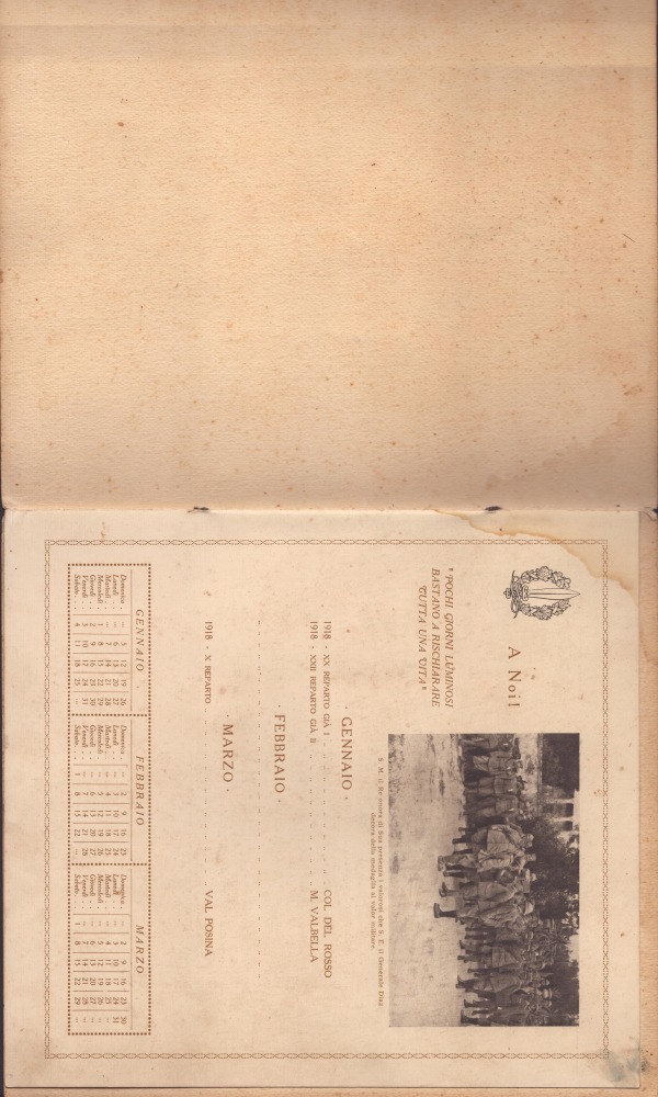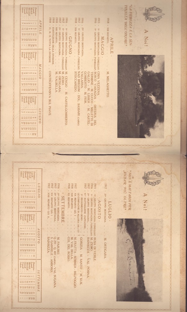 cm.23,4x26 Calendario della PRIMA DIVISIONE D’ASSALTO degli Arditi , 1919 , disegnato da Enrico Sacchetti .