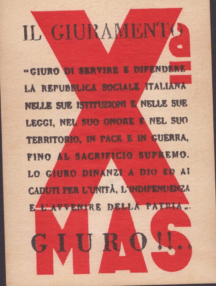 cm.8x11 Volantino stampato in nero e rosso, propaganda della Decima MAS "Il giuramento" - Originale, ottime condizioni, misure cm.8x11