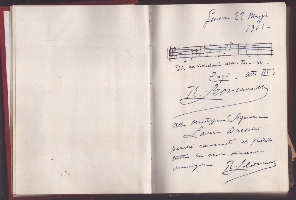 Diario di amicizia, liber amicorum, appartenuto a Laura Breschi nipote di Anton Giulio Barrili, contenente diverse dediche con autografo, disegni originali, righi musicali di noti artisti di fine '800 inizio '900.