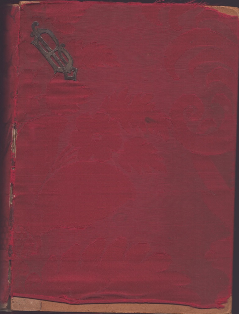 Il diario ha la copertina rigida rivestita da tessuto floreale color fucsia, con le iniziali LB metalliche applicate in alto a sinistra, in condizioni mediocri, con totale distacco del dorso. Le pagine interne sono in ottime condizioni. Misura cm.20x26
