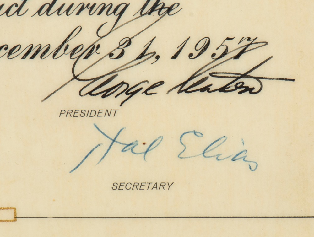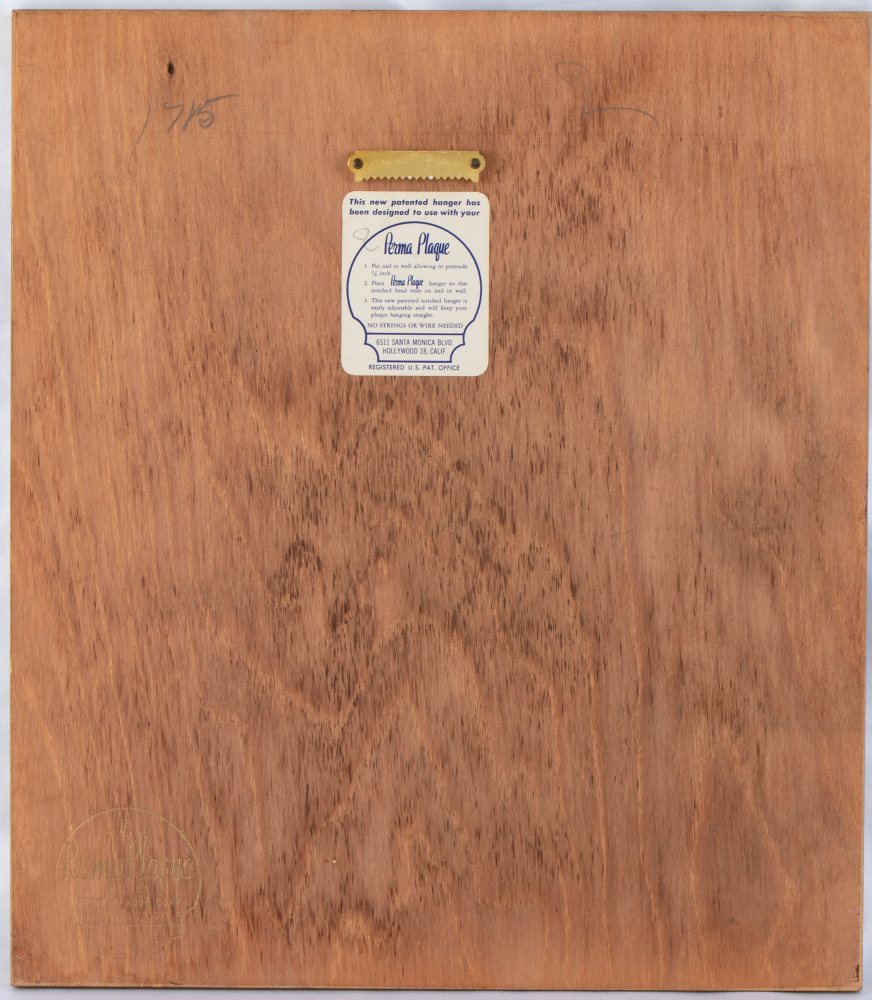 Attestato originale protetto con il metodo Perma Plaque nella classica struttura su supporto di legno (timbro impresso in oro al retro angolo basso sinistro, della ditta di Hollywood)