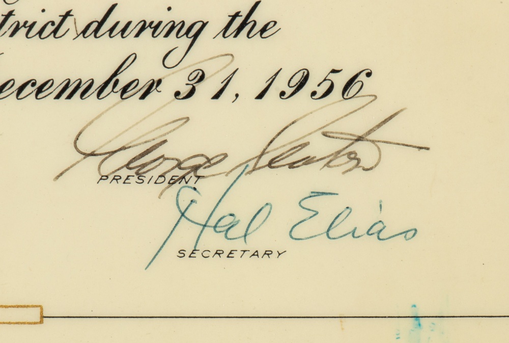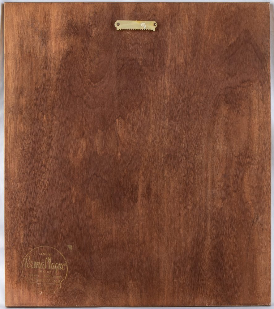 Attestato originale protetto con il metodo Perma Plaque nella classica struttura su supporto di legno (timbro impresso in oro al retro angolo basso sinistro, della ditta di Hollywood)