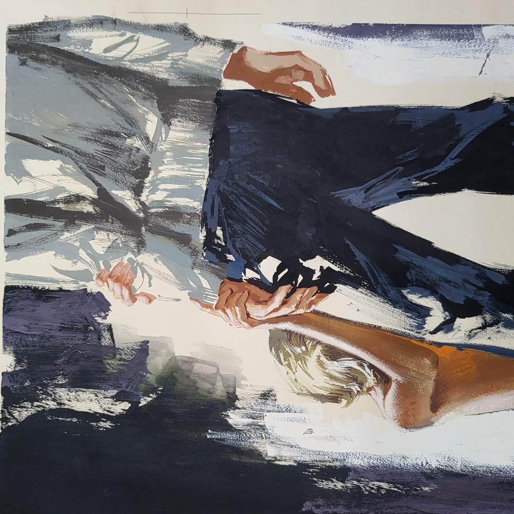 Bozzetto originale per il manifesto del film "Una Vita Bruciata" del 1974 diretto da Roger Vadim. Olio su carta, non firmato (attribuibile a Luciano Crovato ?) in eccellenti condizioni, misura cm.63x63