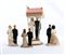 Composizione Lotto di 4 coppie di sposi in abito da cerimonia, composizione (senza marchi), metà XX secolo. Misure cm.7-15, in buone condizioni, mancanze e rottura ad una colonnina del gazebo