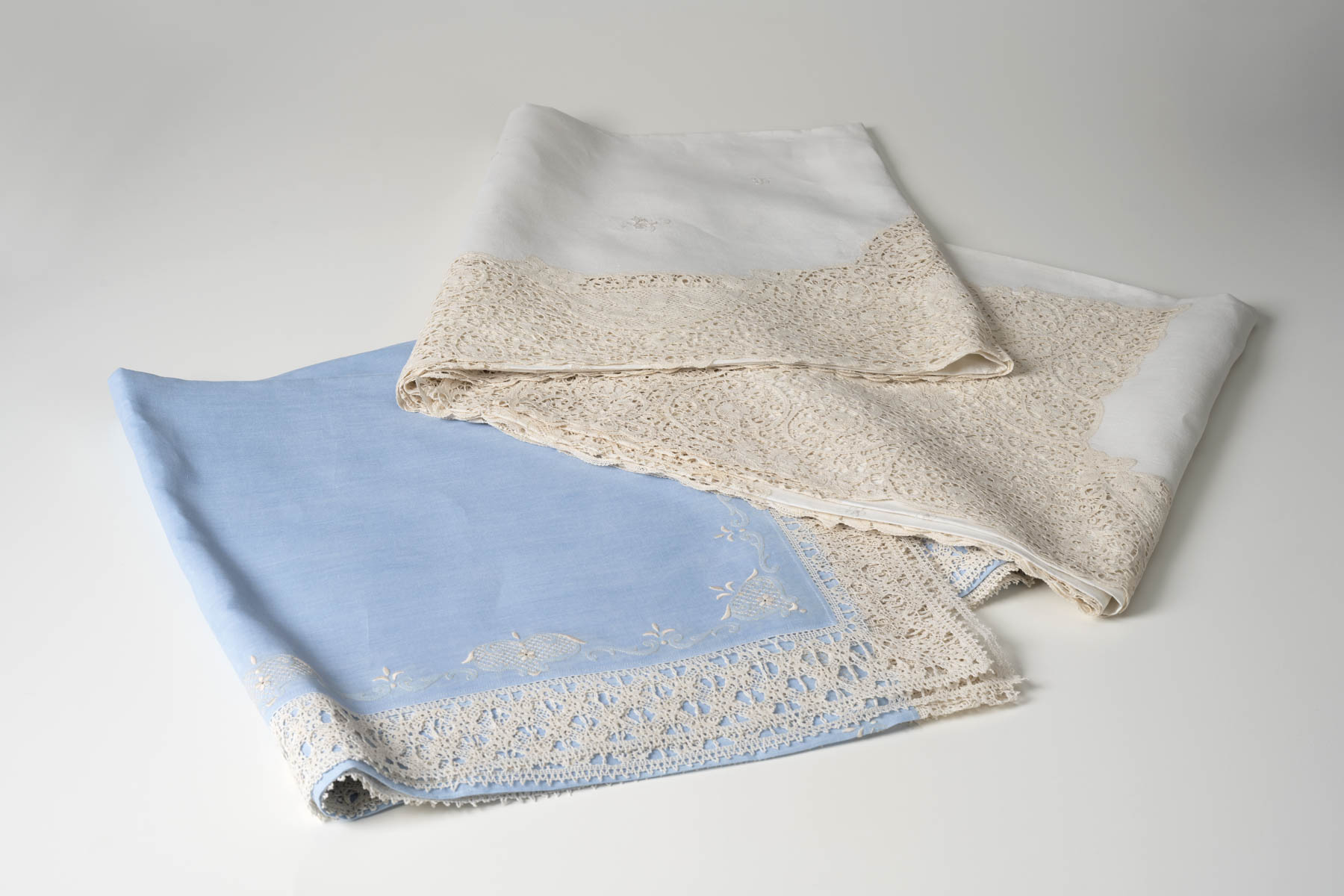 Jesorum Venezia 3 tovaglie in lino;Ricamate a mano con pizzo, un azzurra, due...