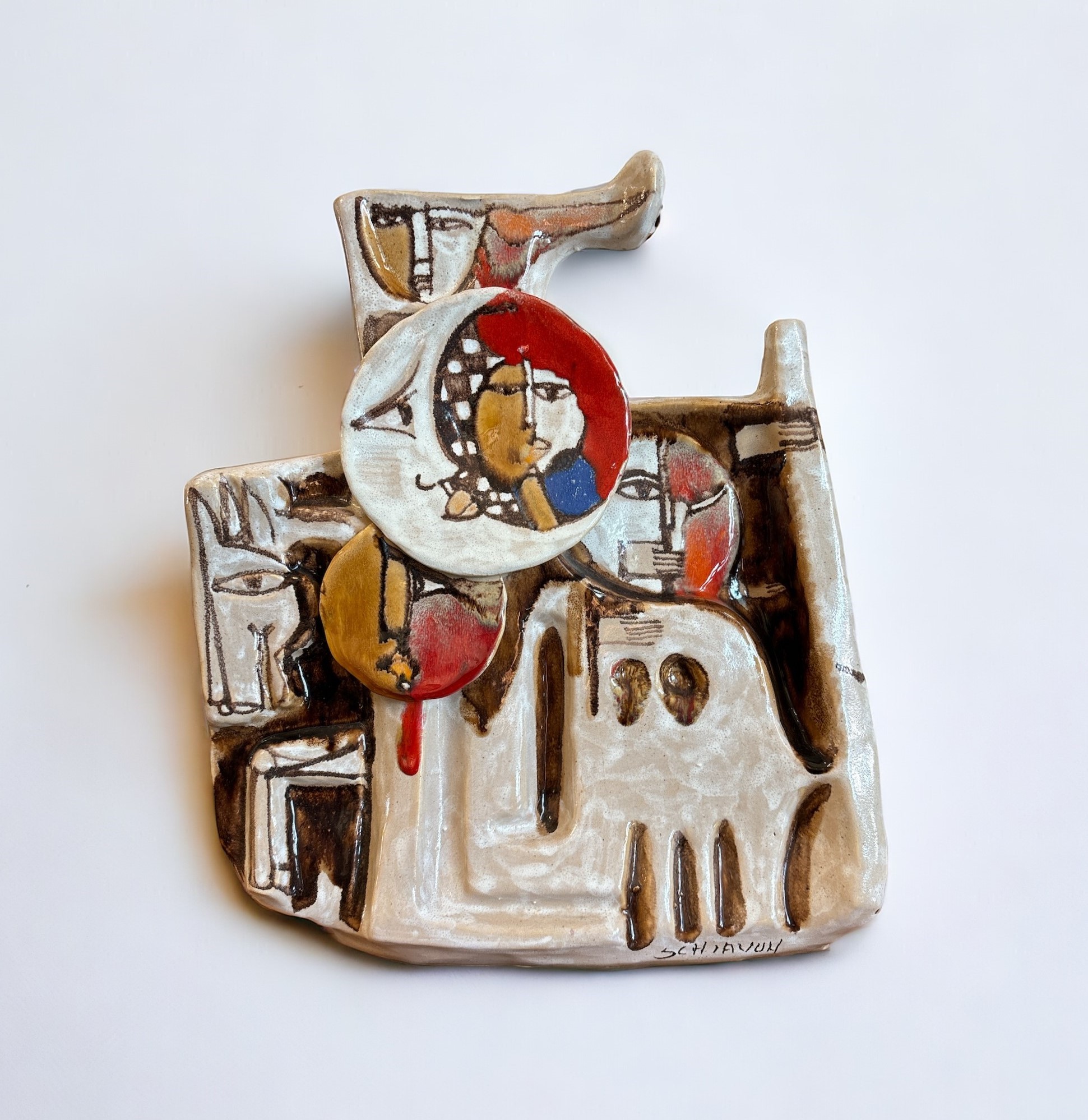 Elio Schiavon (1925 - 2004) Vaso raffigurante quarto di luna ceramica 33 x 27 x 12 cm
