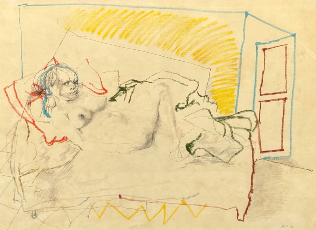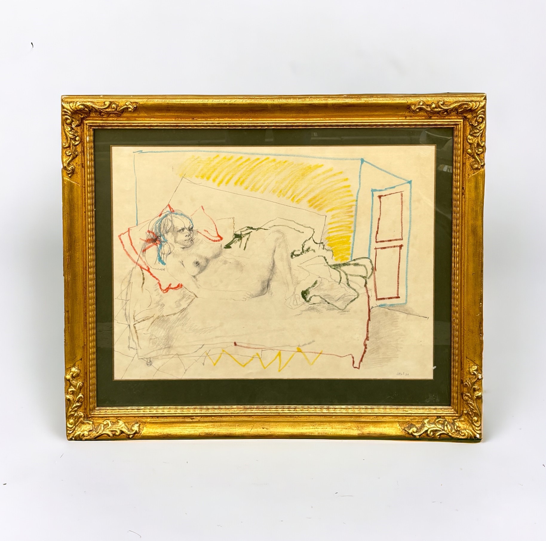 Ugo Attardi (1923 - 2006) Nudo femminile disteso 1966 tecnica mista su carta 48 x 64 cm