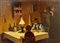 Cafiero Filippelli (1889 - 1973) Scena d'interno serale olio su tavoletta 24 x 34 cm