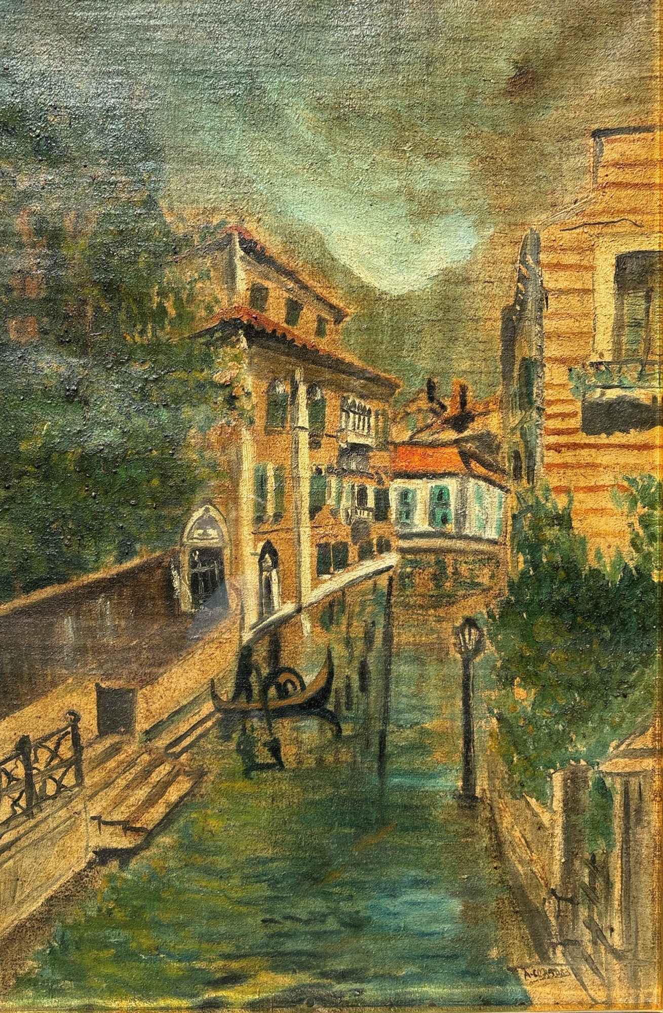 Antonio Corpora (1909 - 2004) Canale Veneziano anni '40 del XX secolo olio su tela 42 x 64 cm