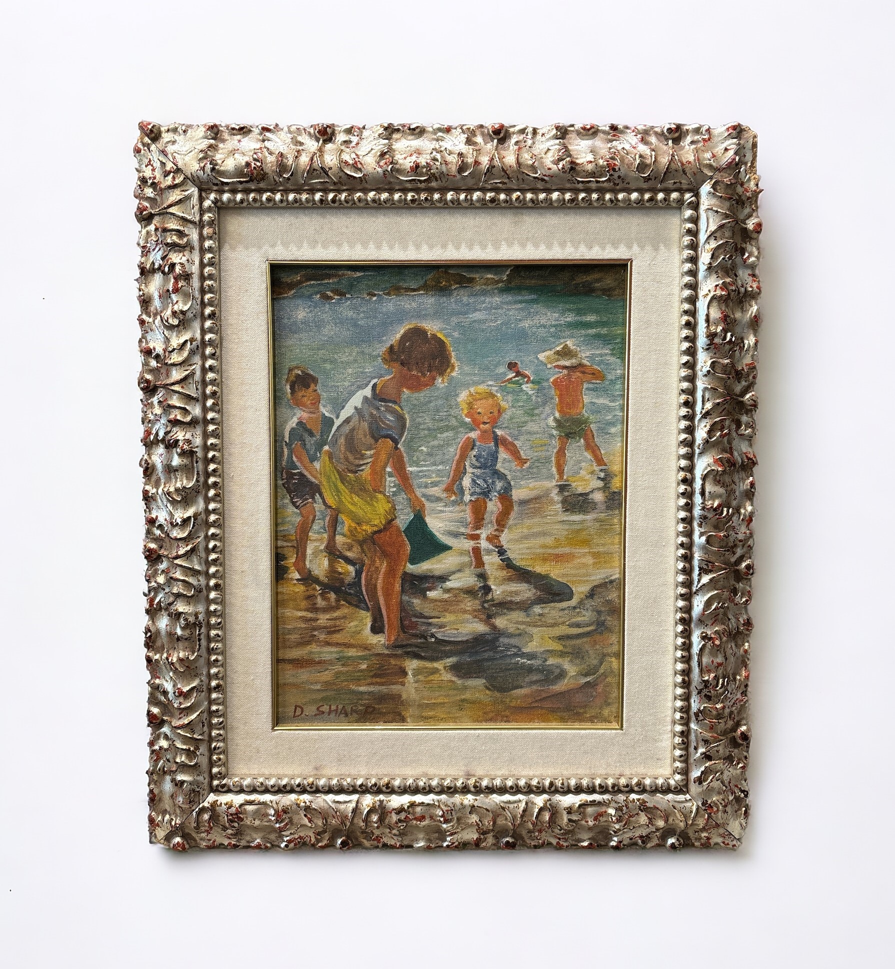 Dorothea Sharp (firma_di) (1874 - 1955) Bambini al mare olio su tela applicata su compensato 40 x 30 cm