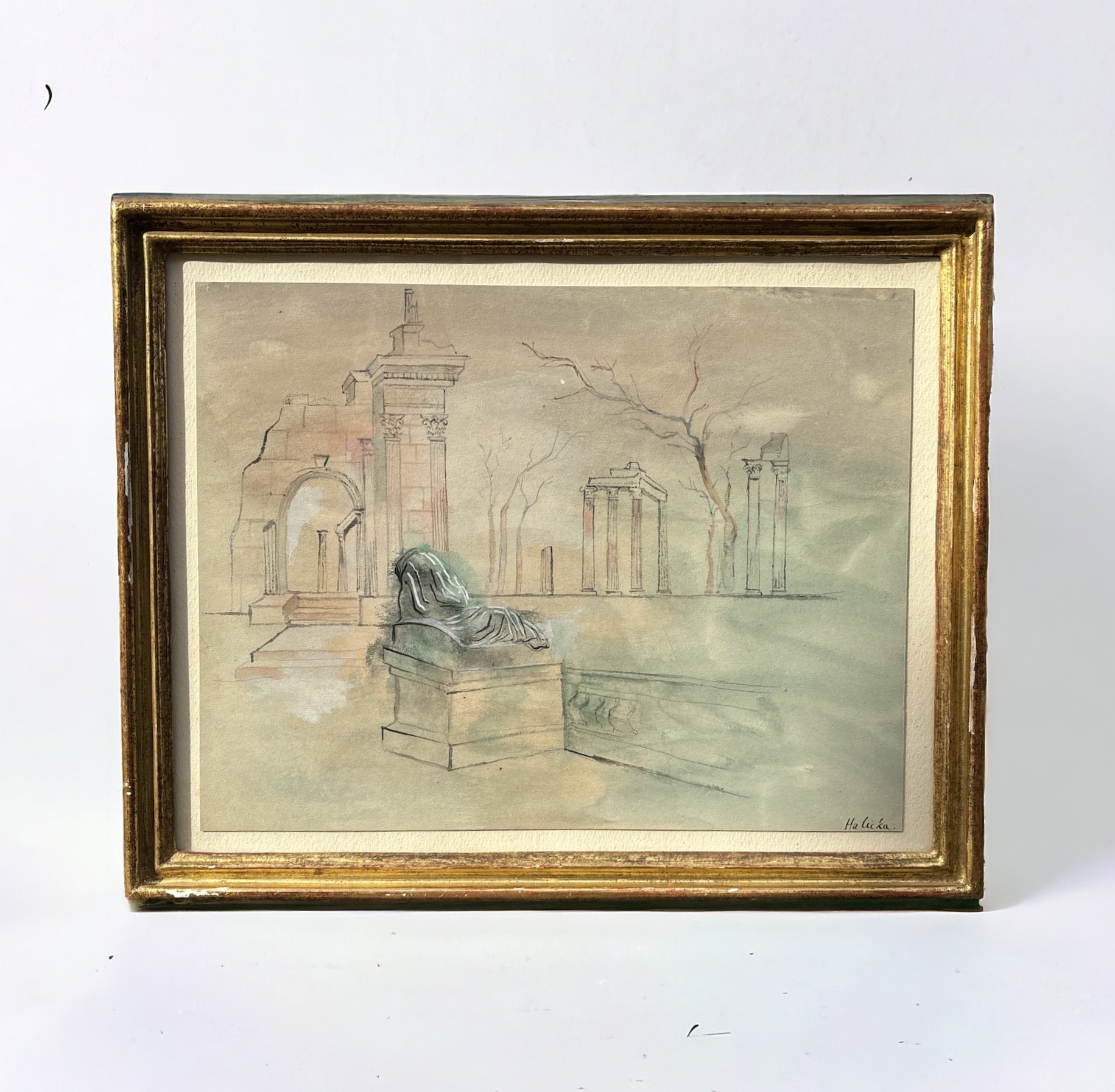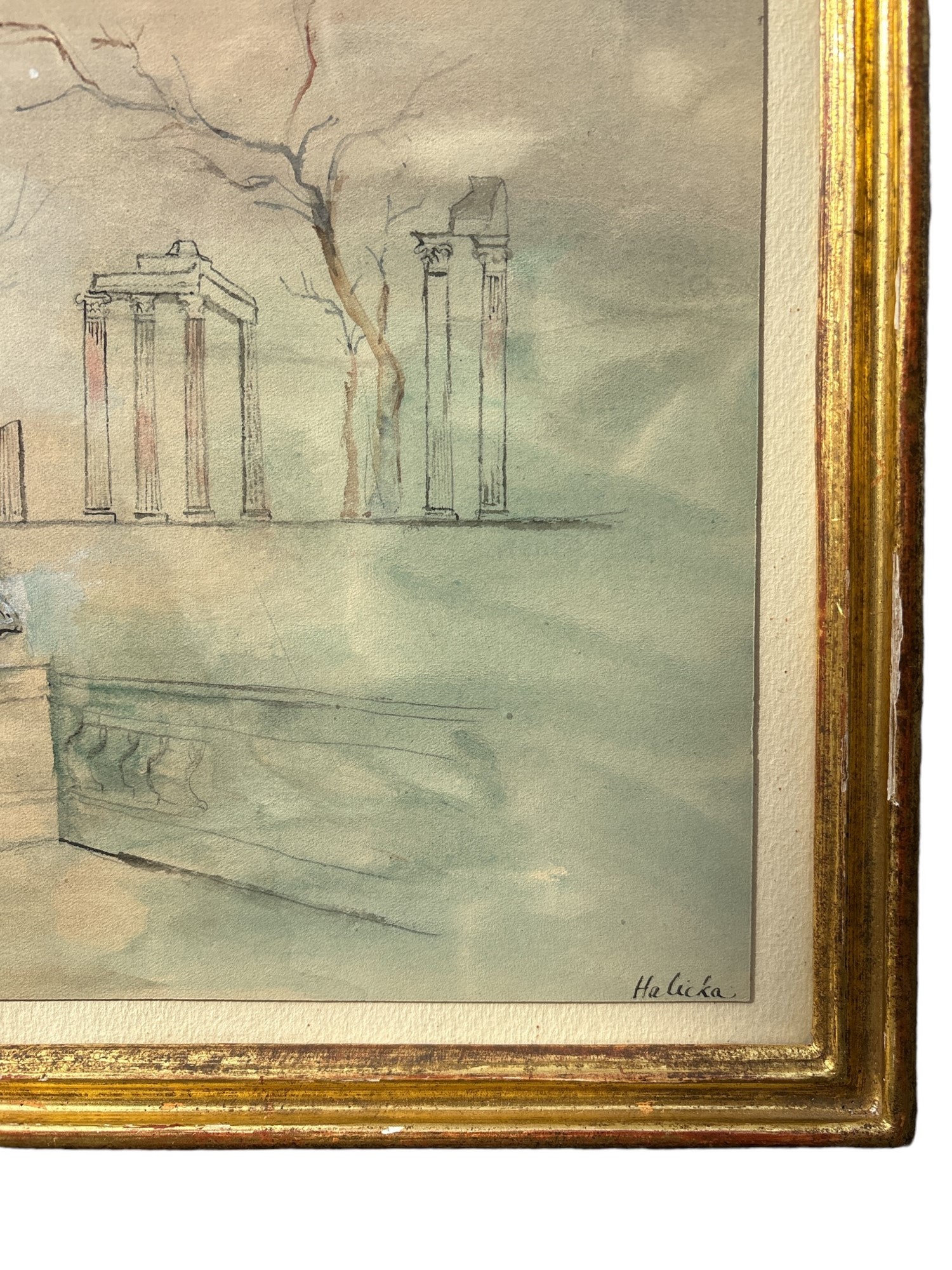 Alice Halicka (1895 - 1975) Capriccio con rovine tecnica mista su carta 23 x 3o cm