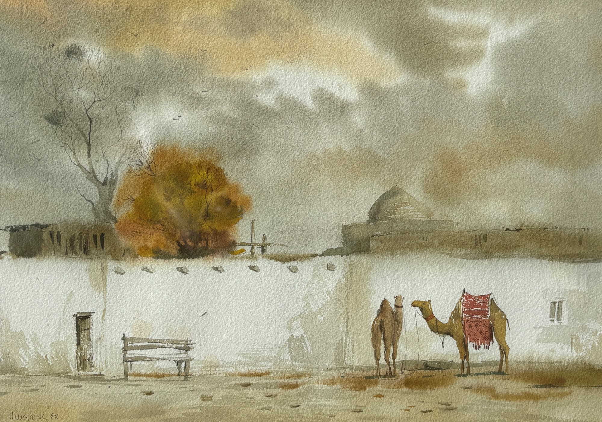 Ulughbek Mukhamedov (1969 - ) Paesaggio invernale uzbeco 1998 acquarello su carta 24 x 34 cm