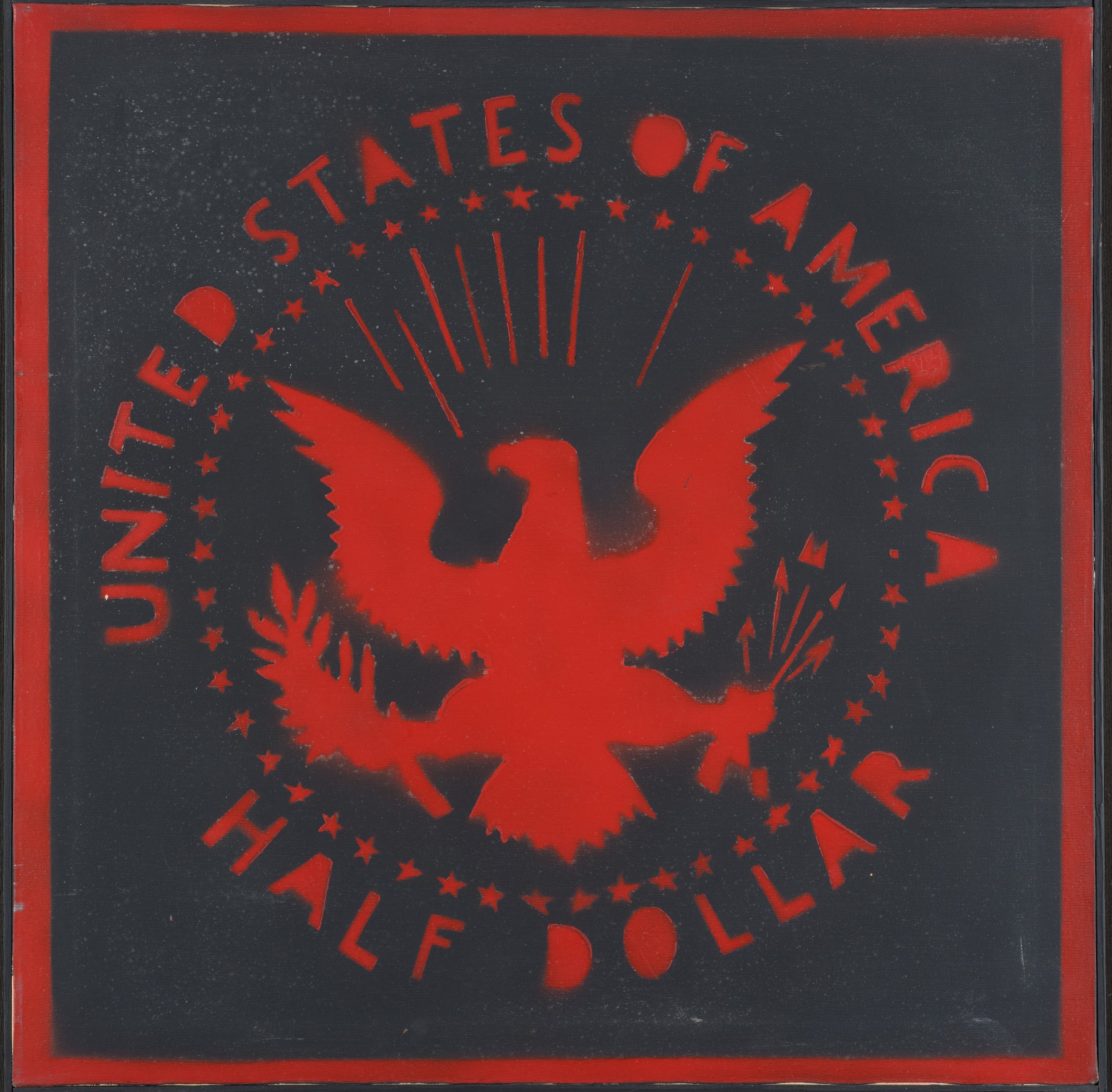 Franco Angeli (1935 - 1988) Half dollar - Antipittura tecnica mista su tela 70 x 70 cm
