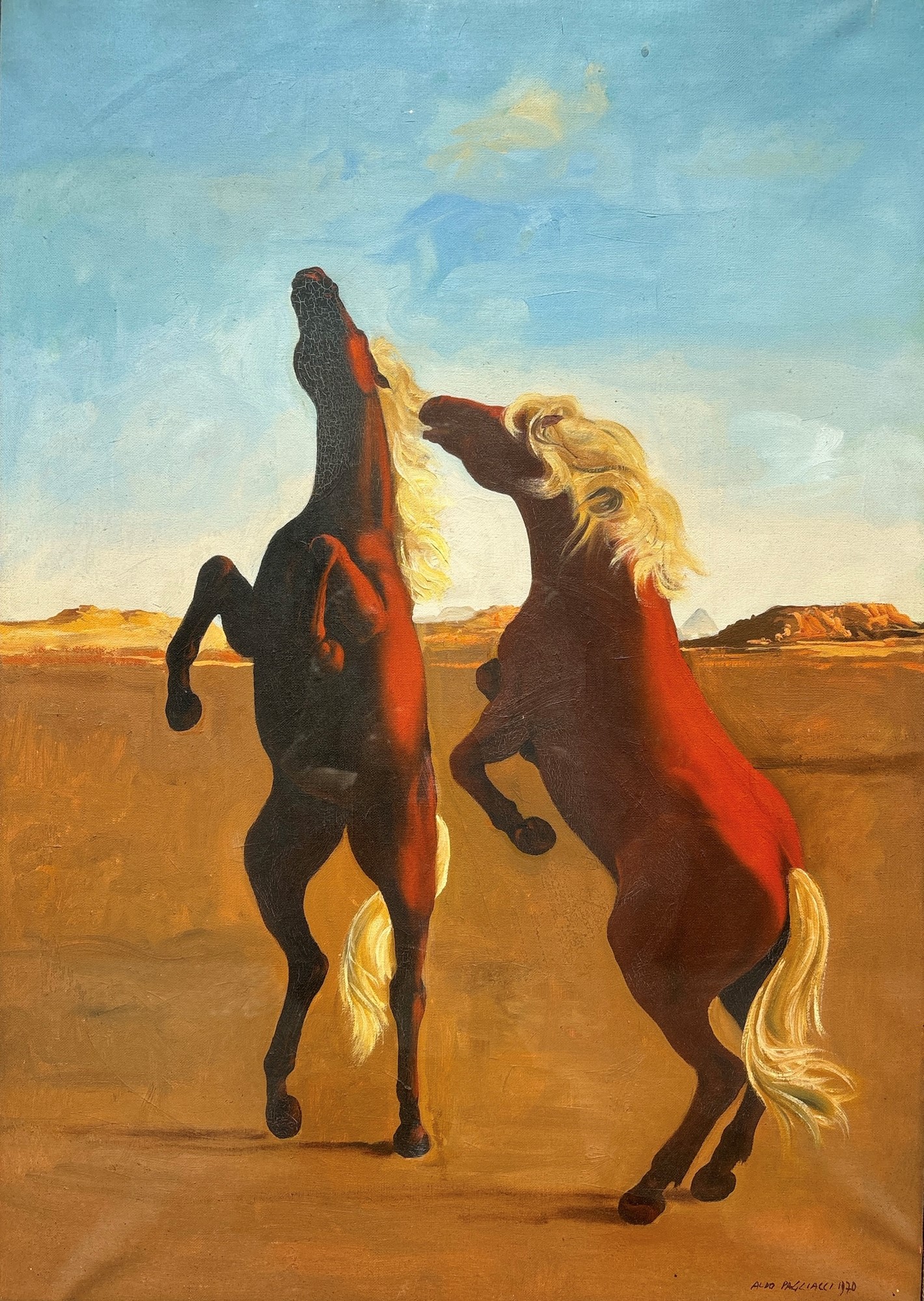 Aldo Pagliacci (1913 - 1991) Cavalli rampanti 1970 olio su tela 70 x 50 cm
