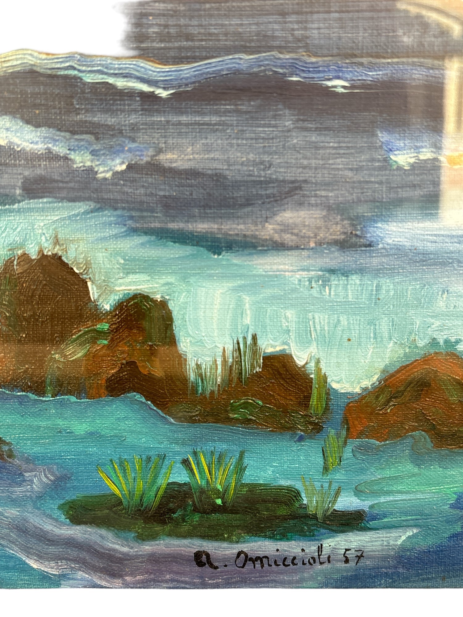 Alfonso Omiccioli (1923 - 2004) Mare mosso 1986 olio su tela 30 x 50 cm
