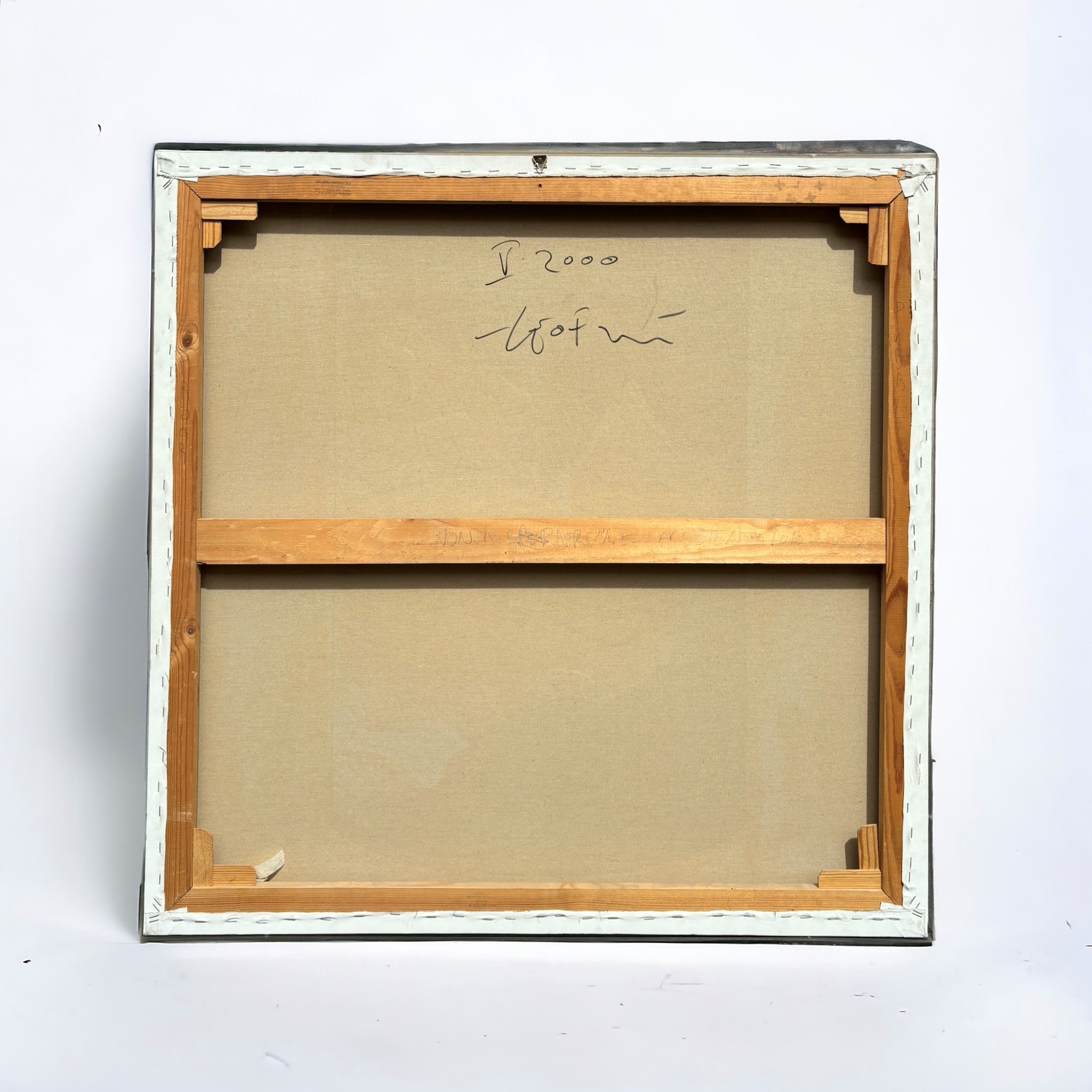 tecnica mista su tela cm 95 x 95. Datate e firmate al retro della tela. In cornice.