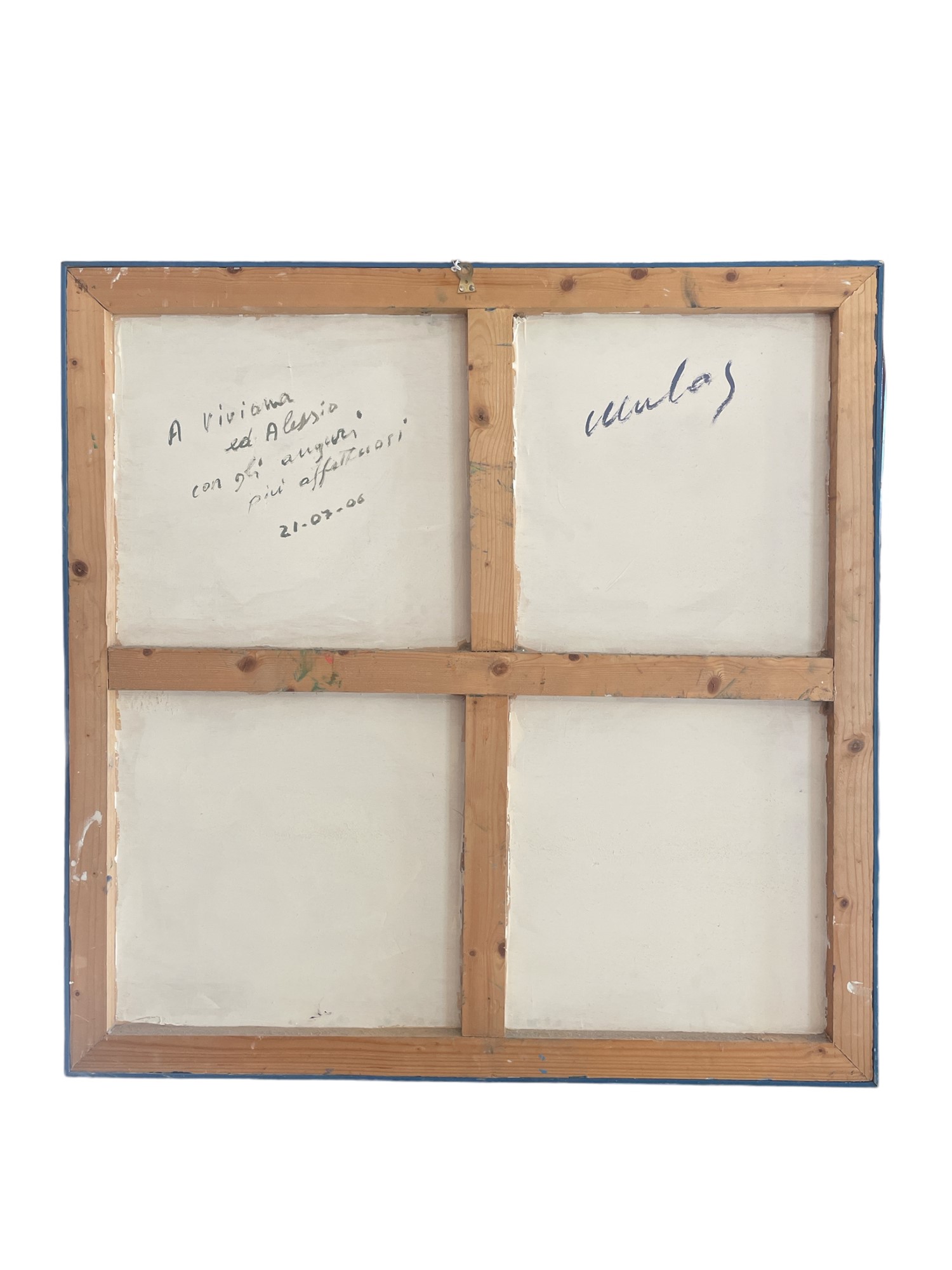 olio su tavola 82 x 82 cm. Firmato in basso a destra. Firmato, datato e dedicato al verso.
