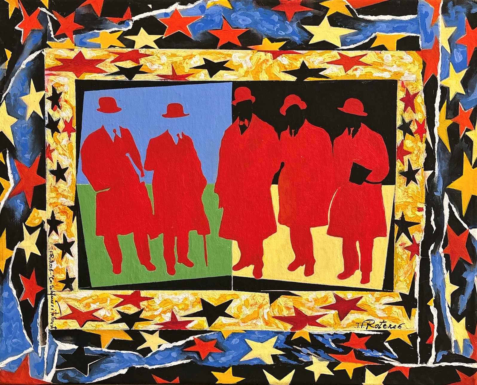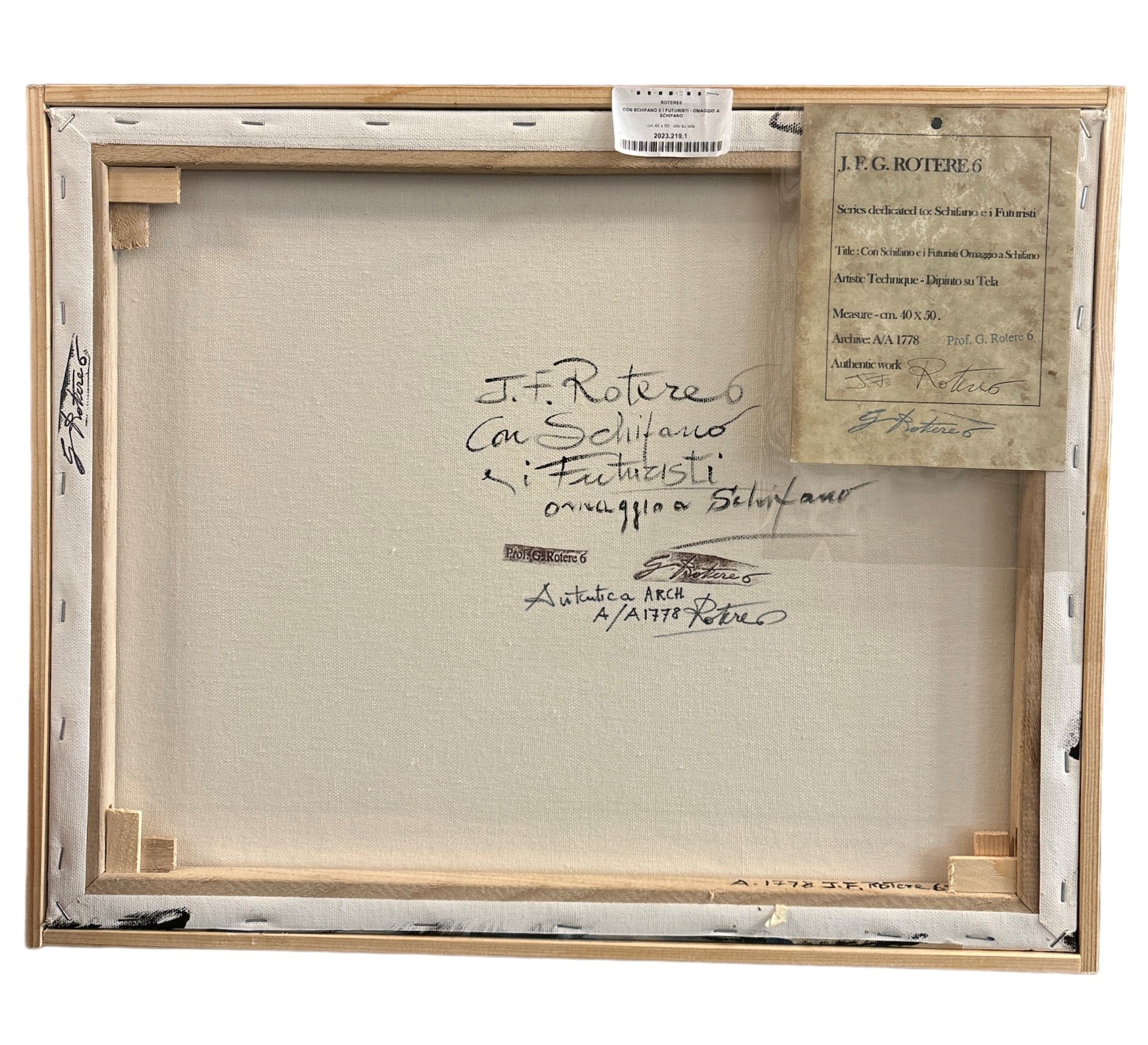Rotere6 (1953 - ) Con Schifano e i Futuristi - Omaggio a Schifano olio su tela cm 40 x 50