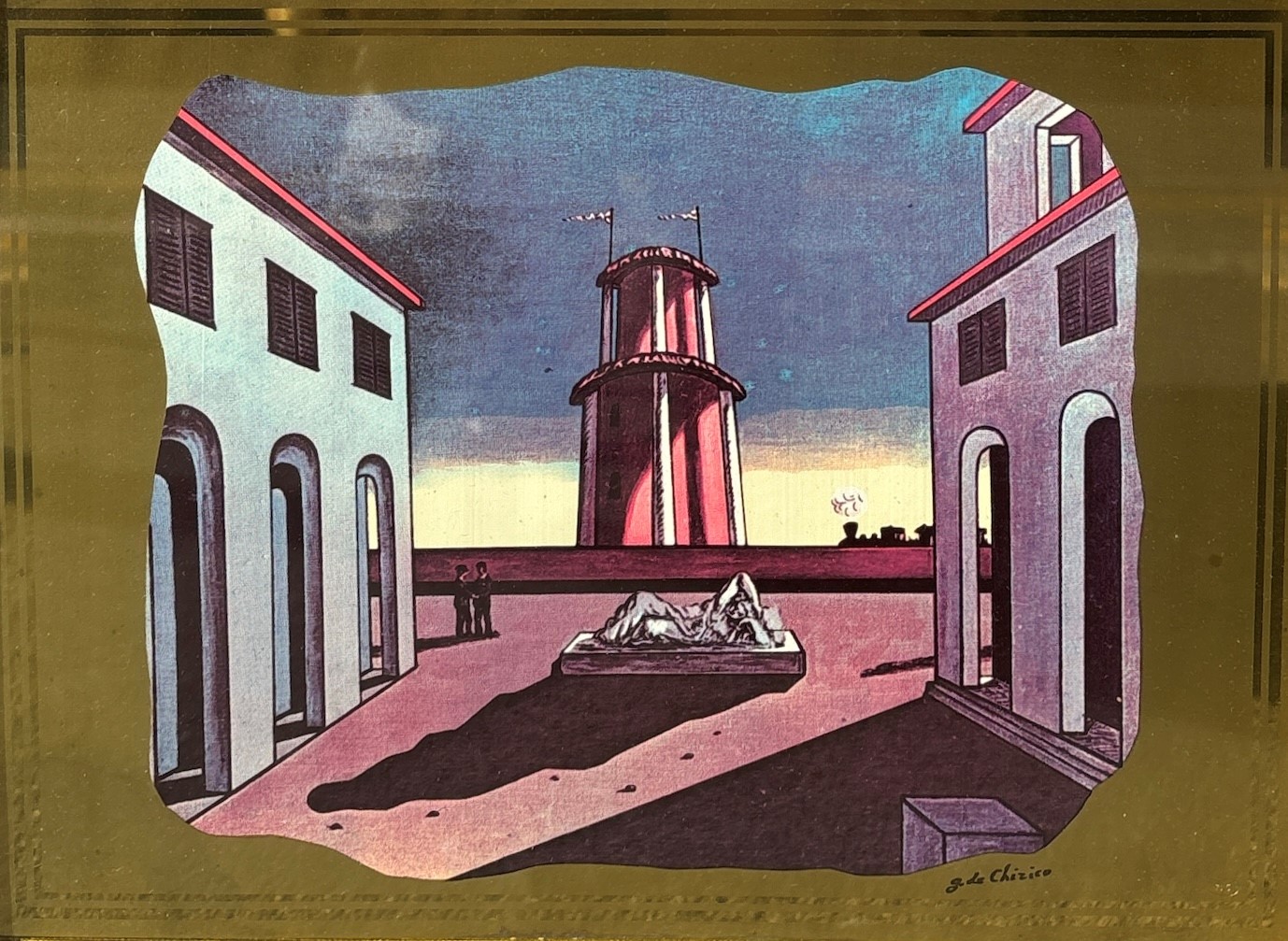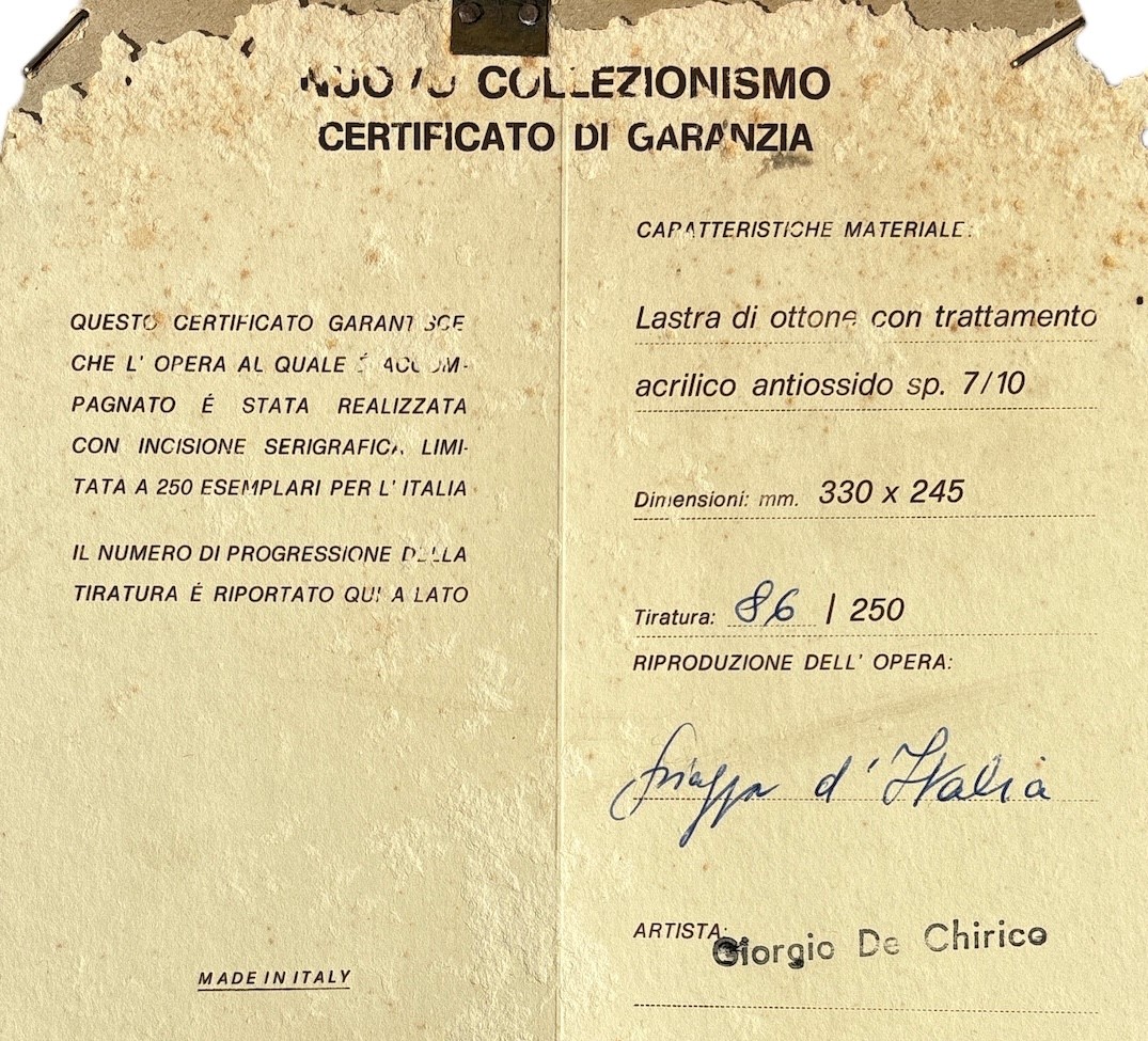 Giorgio De Chirico (1888 - 1978) Piazza d'Italia Lastra in ottone con trattamento in acrilico antiossido 24 x 33 cm