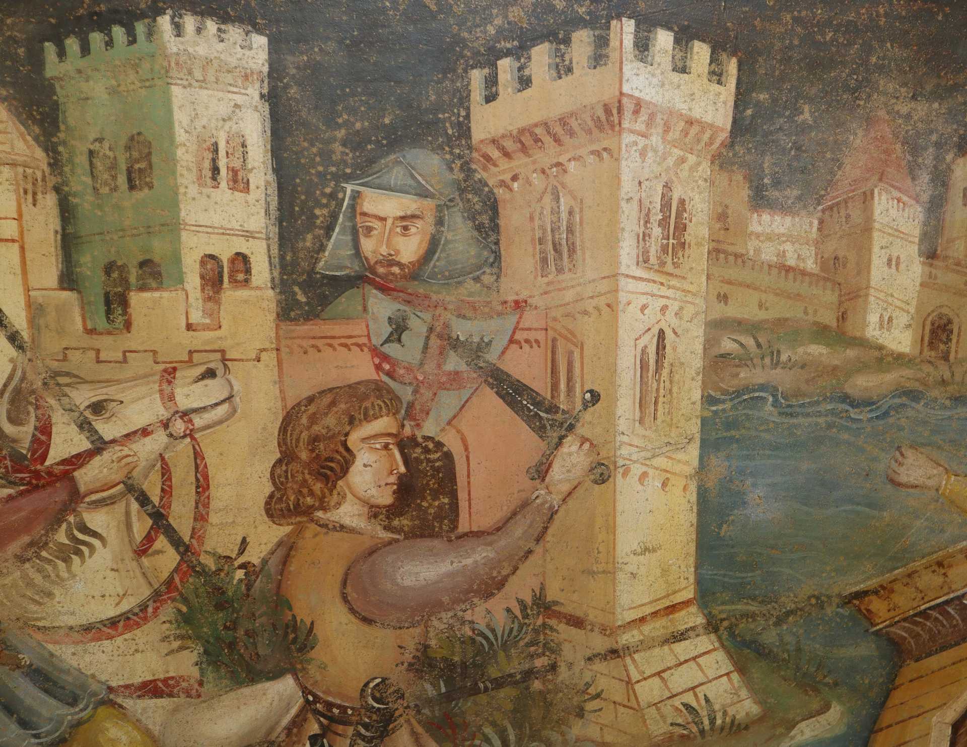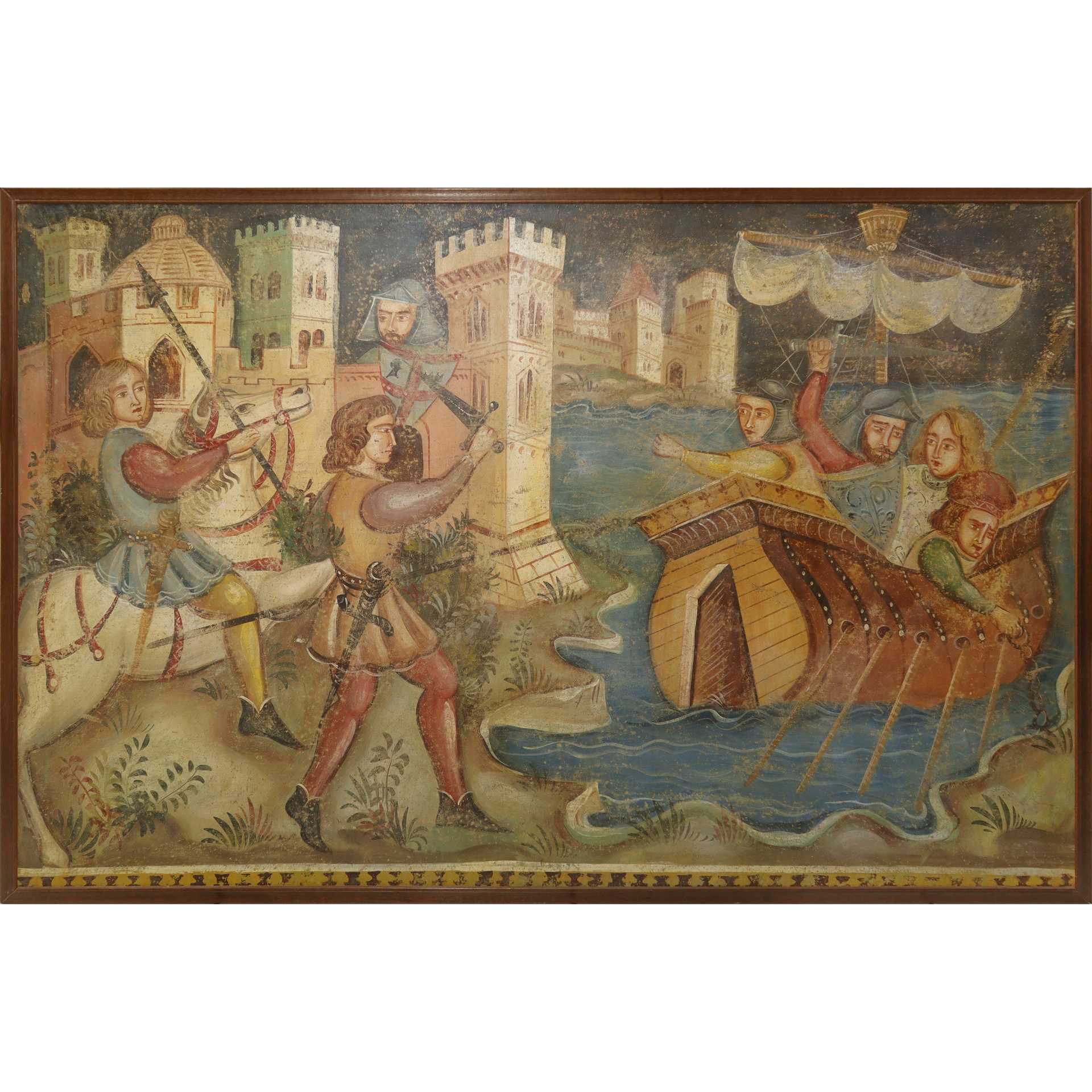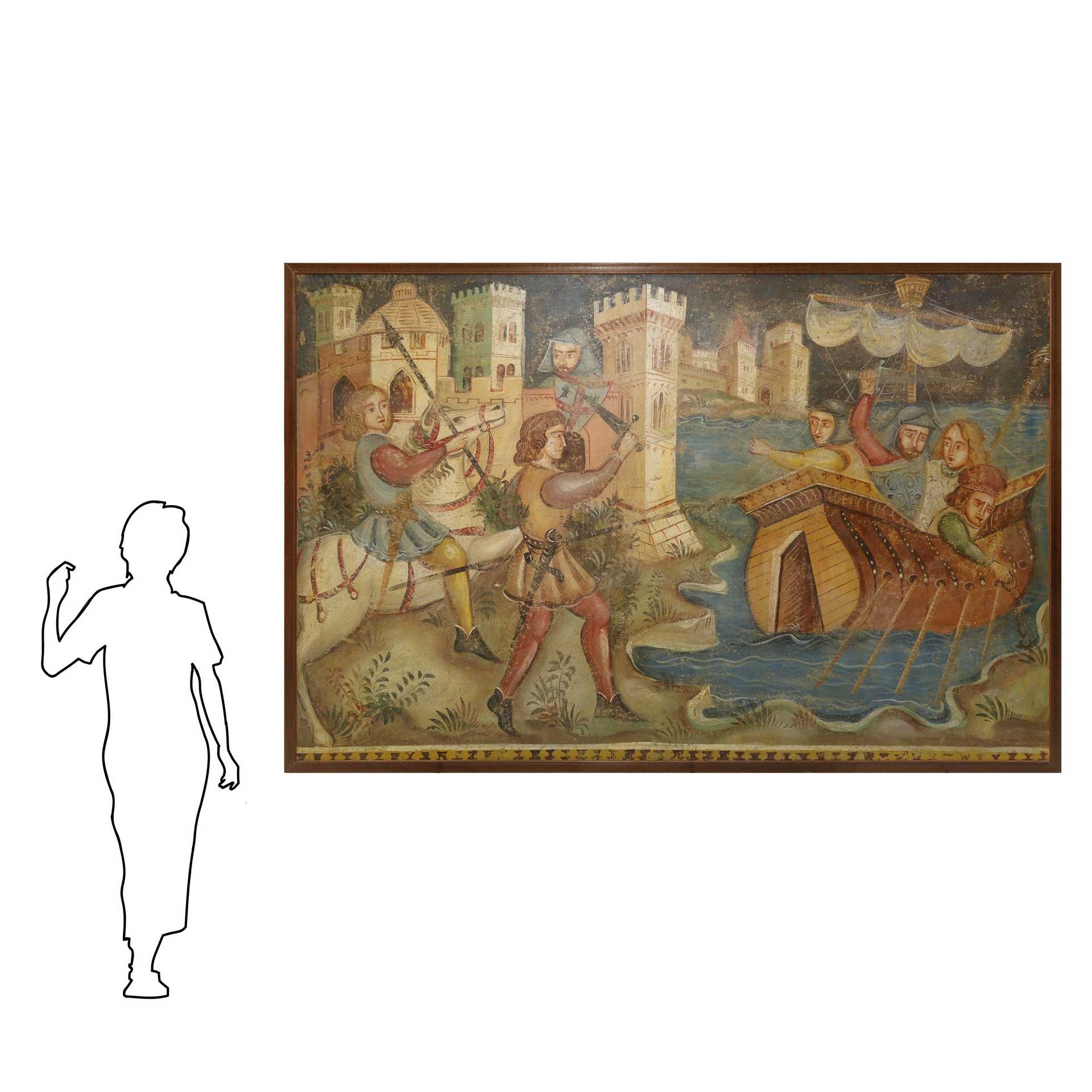 Strappo di affresco scena di battaglia tra Nave e assediati cm 124x184 XV/XVI secolo