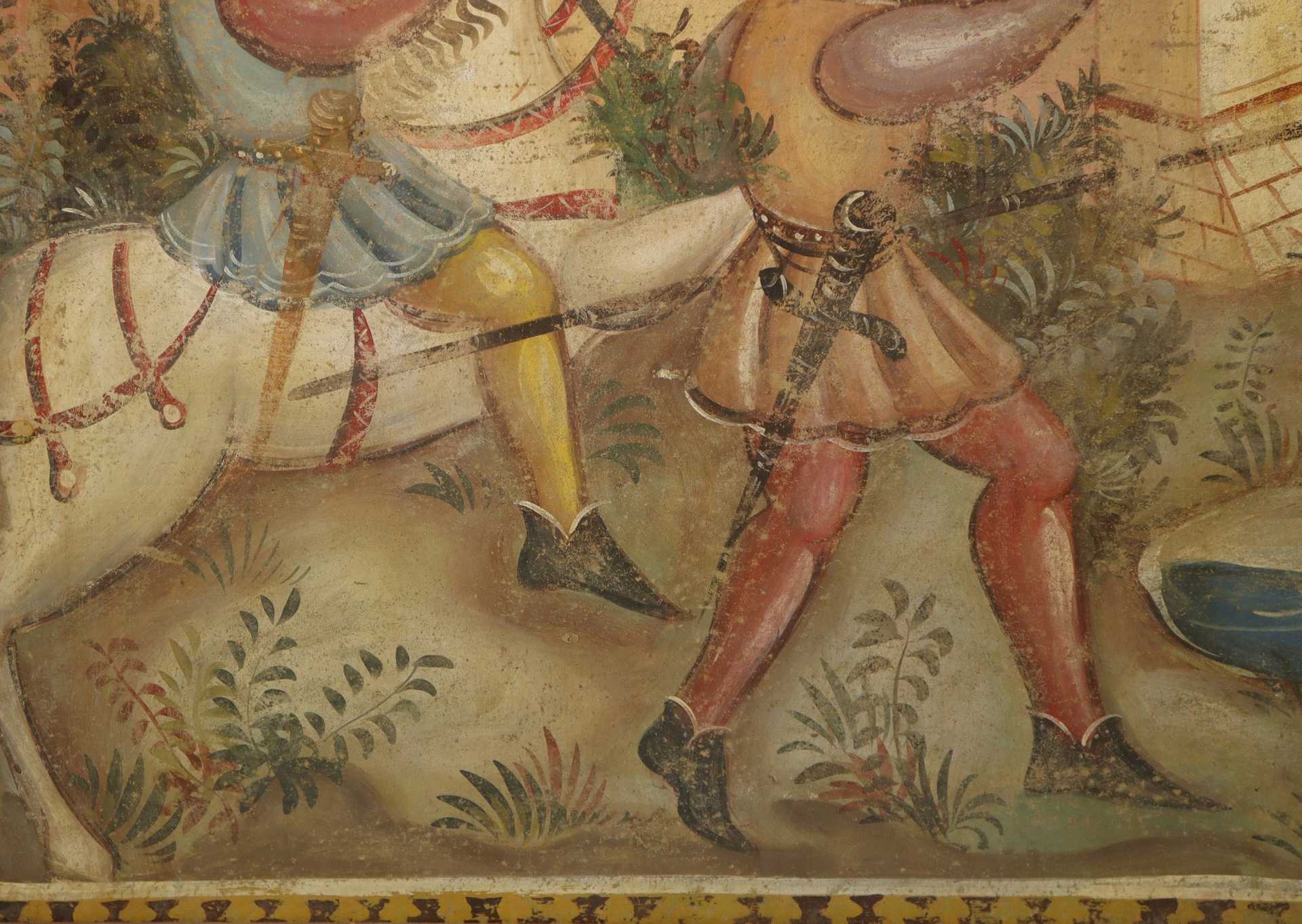 Strappo di affresco scena di battaglia tra Nave e assediati
