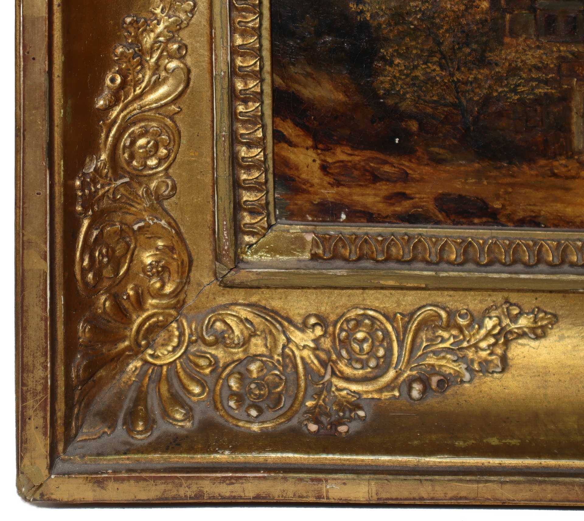 Paesaggio fluviale con rovine architettoniche cm 24 x cm 21; in cornice cm 36 x cm 33 Olio su tela