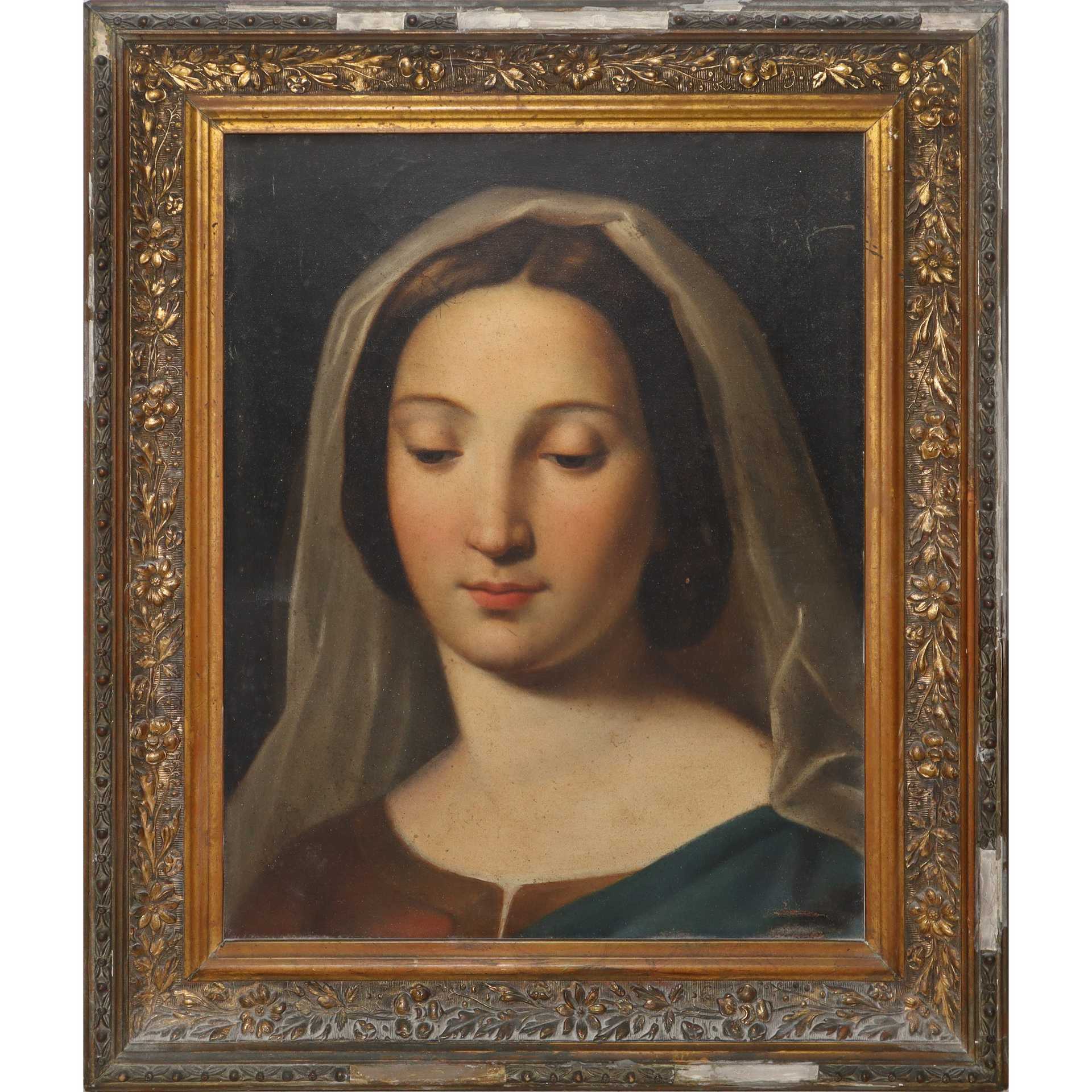 Madonna con velo, 19° Secolo painter H cm 41 x 32,5; 8in cornice) H cm 53 x 44 Olio su tela.