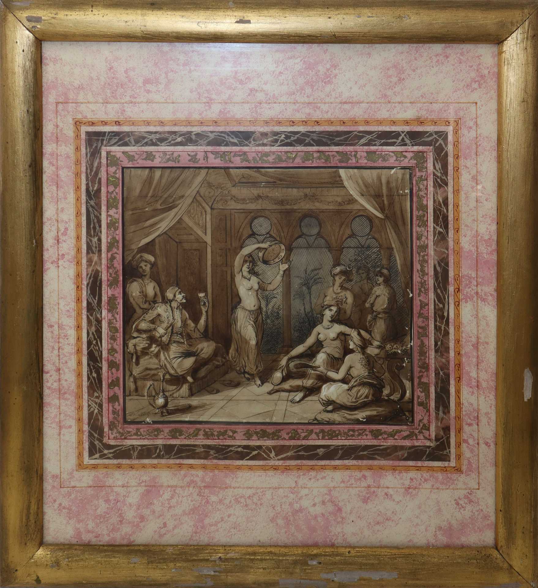 Interno di harem con donne in cornice di legno dorato, 19th/20° Secolo