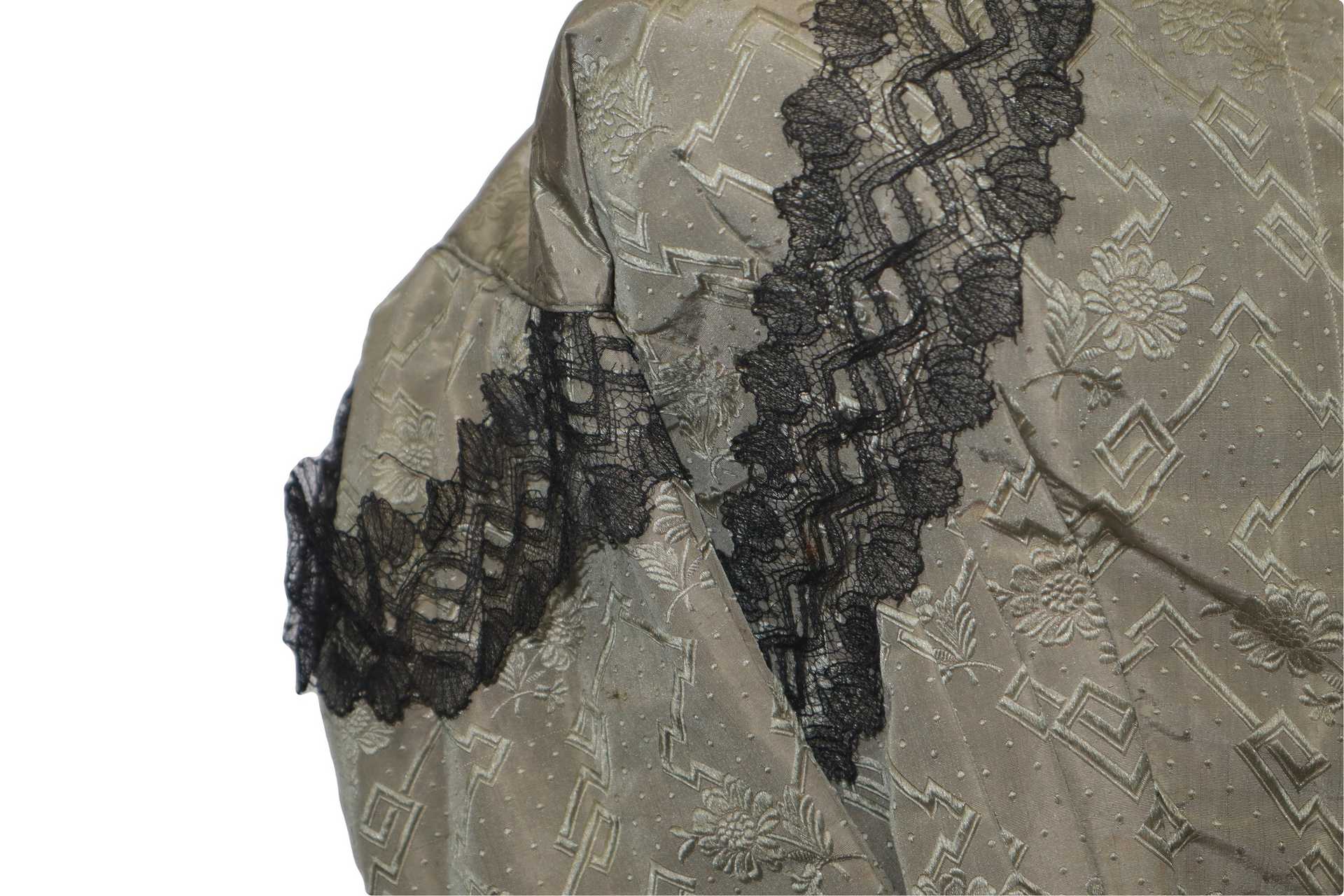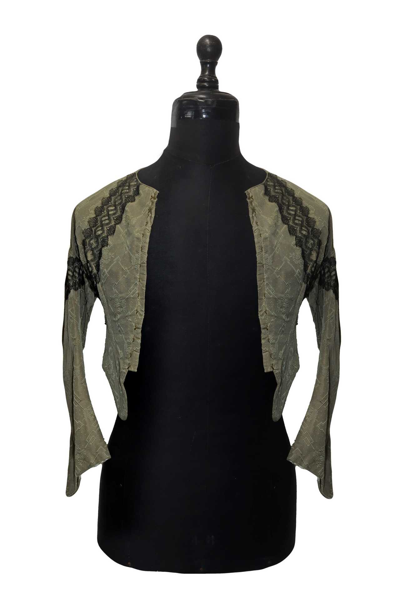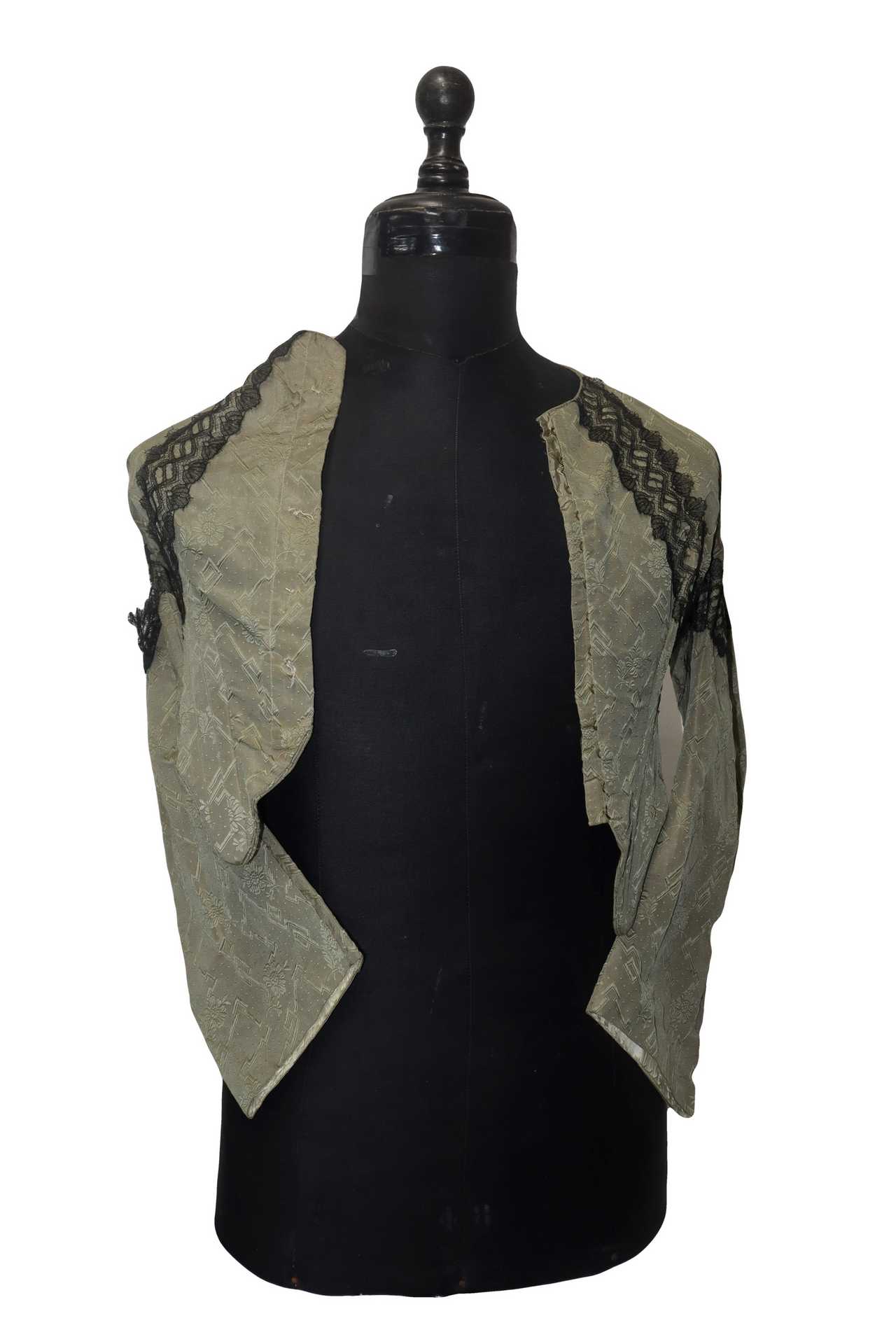 Casacca da donna , 19° Secolo Ricamato in seta verde e applicazione di merlettiRicamato in s