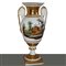 N°3 vasetti, Vecchia Francia, in porcellana bianca e dorata con decorazioni di paesaggi su ambo i la