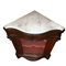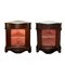 Coppia di angoliere in legno di mogano con marmo al piano e sportello centrale a vetri, Sicily, mid-