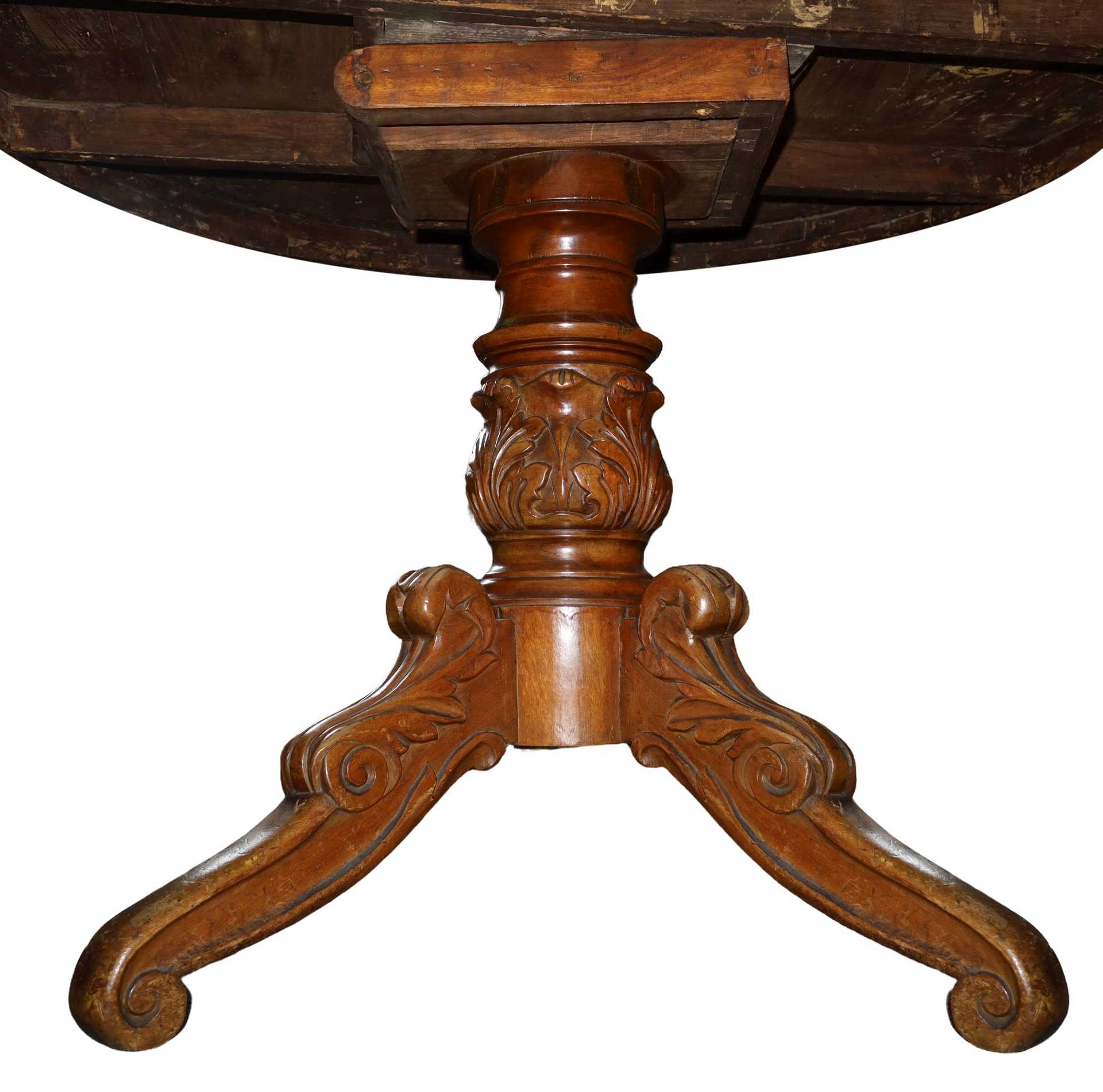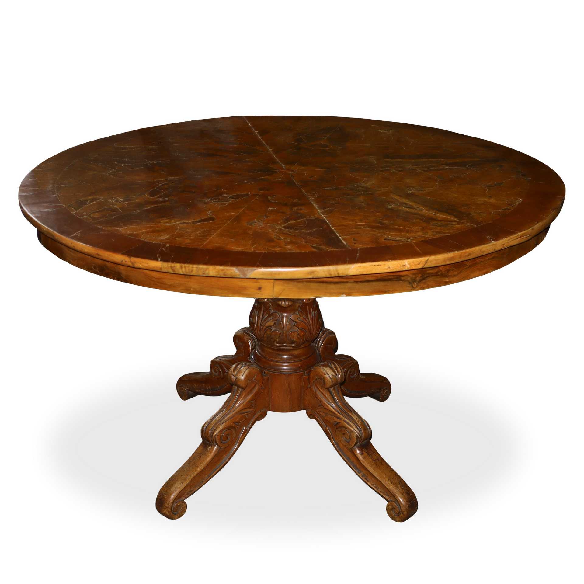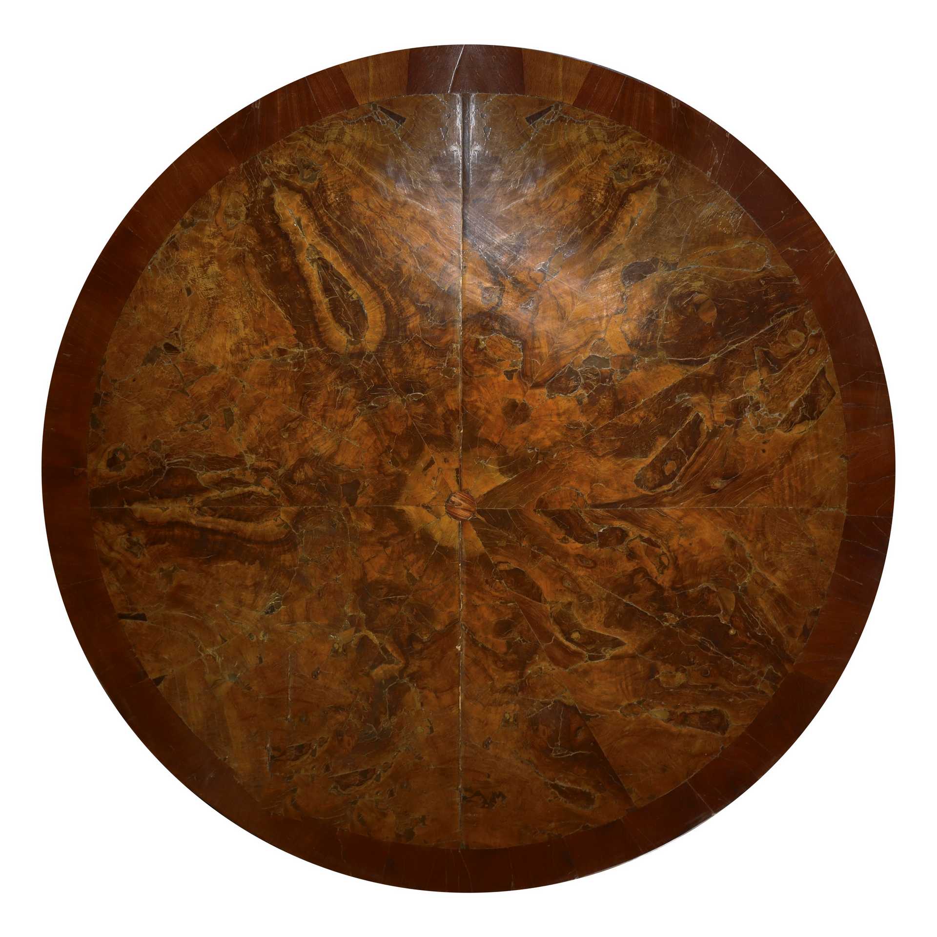 Lotto 107 | Tavolo rotondo con piano in radica e piede a quattro razze, Early 20° Secolo
