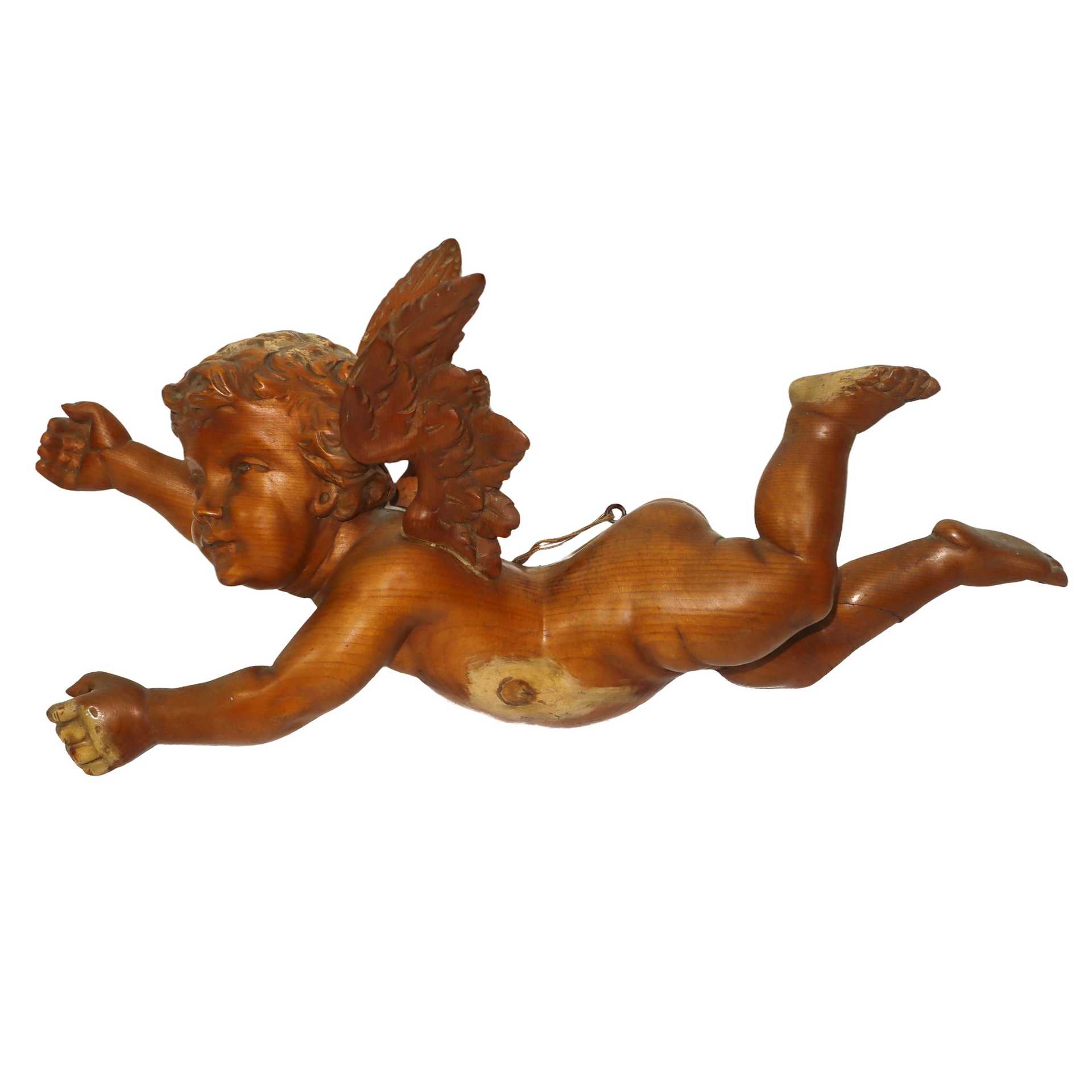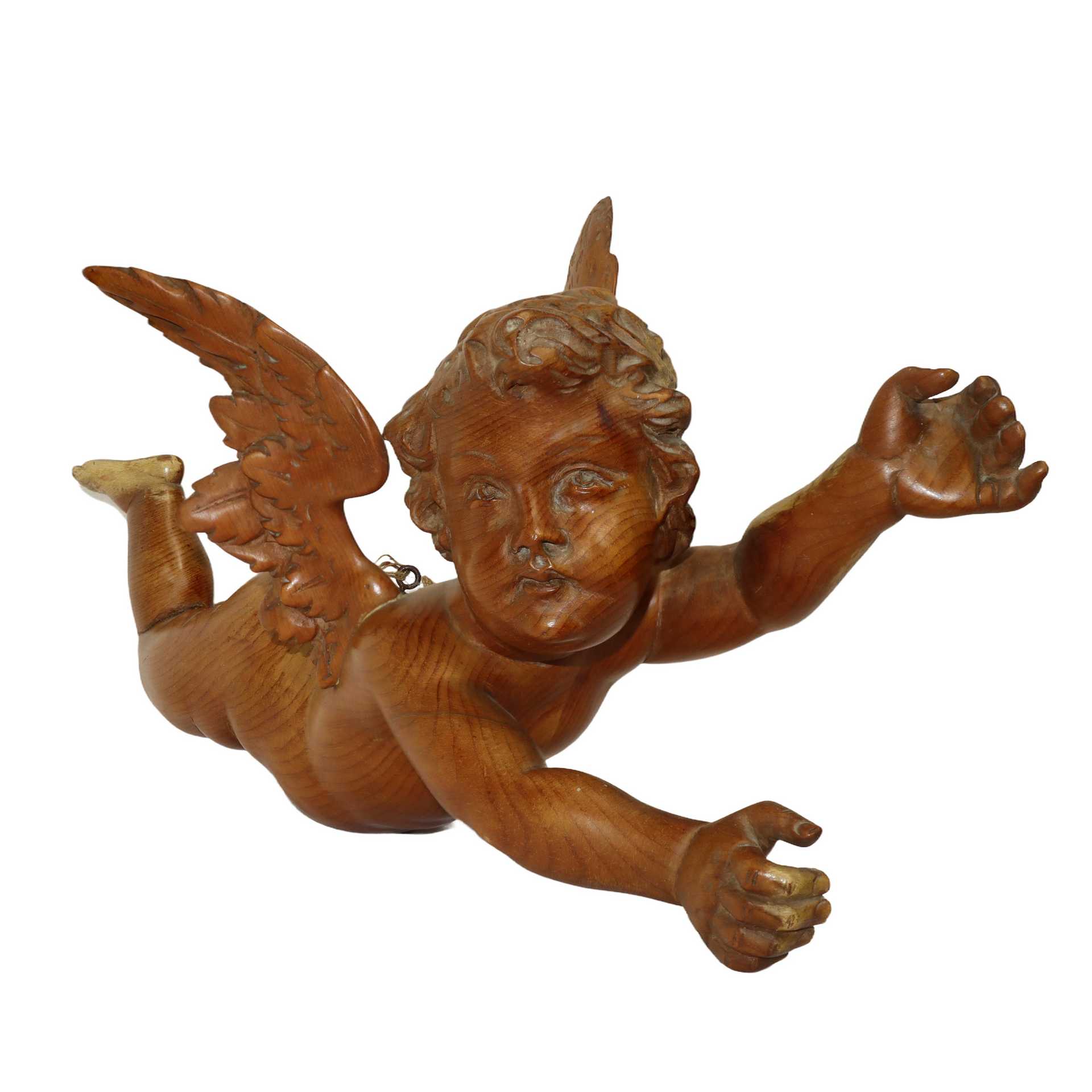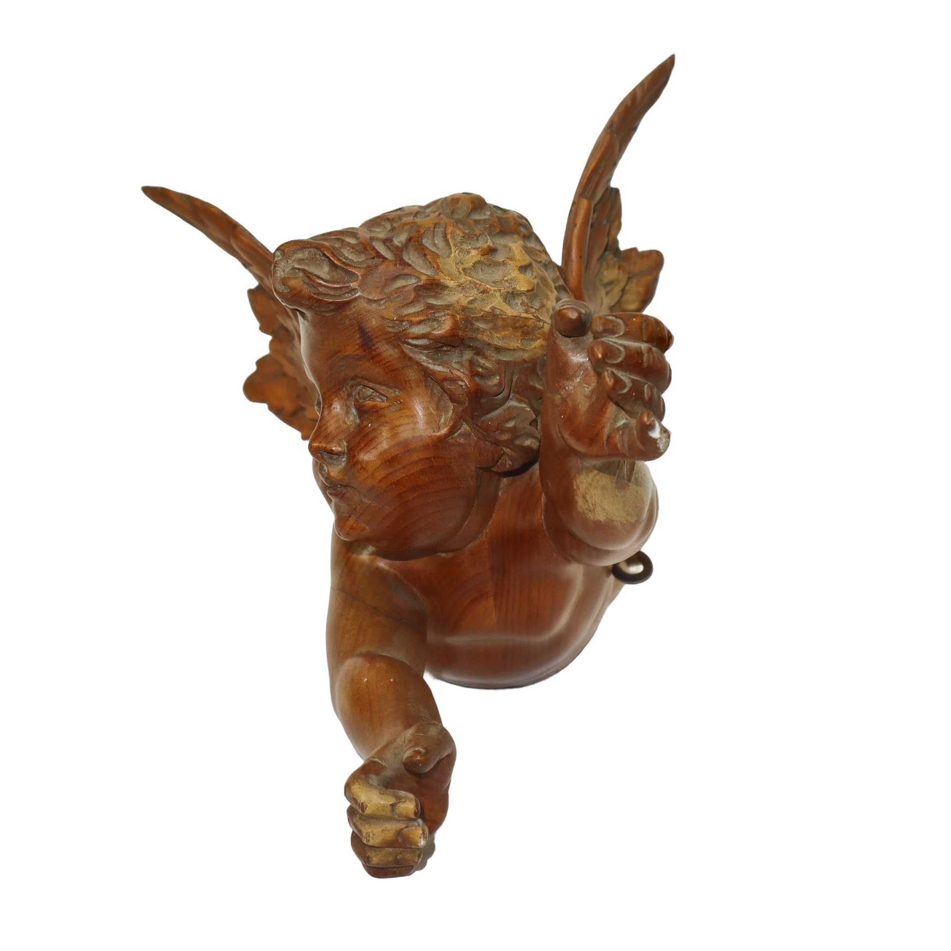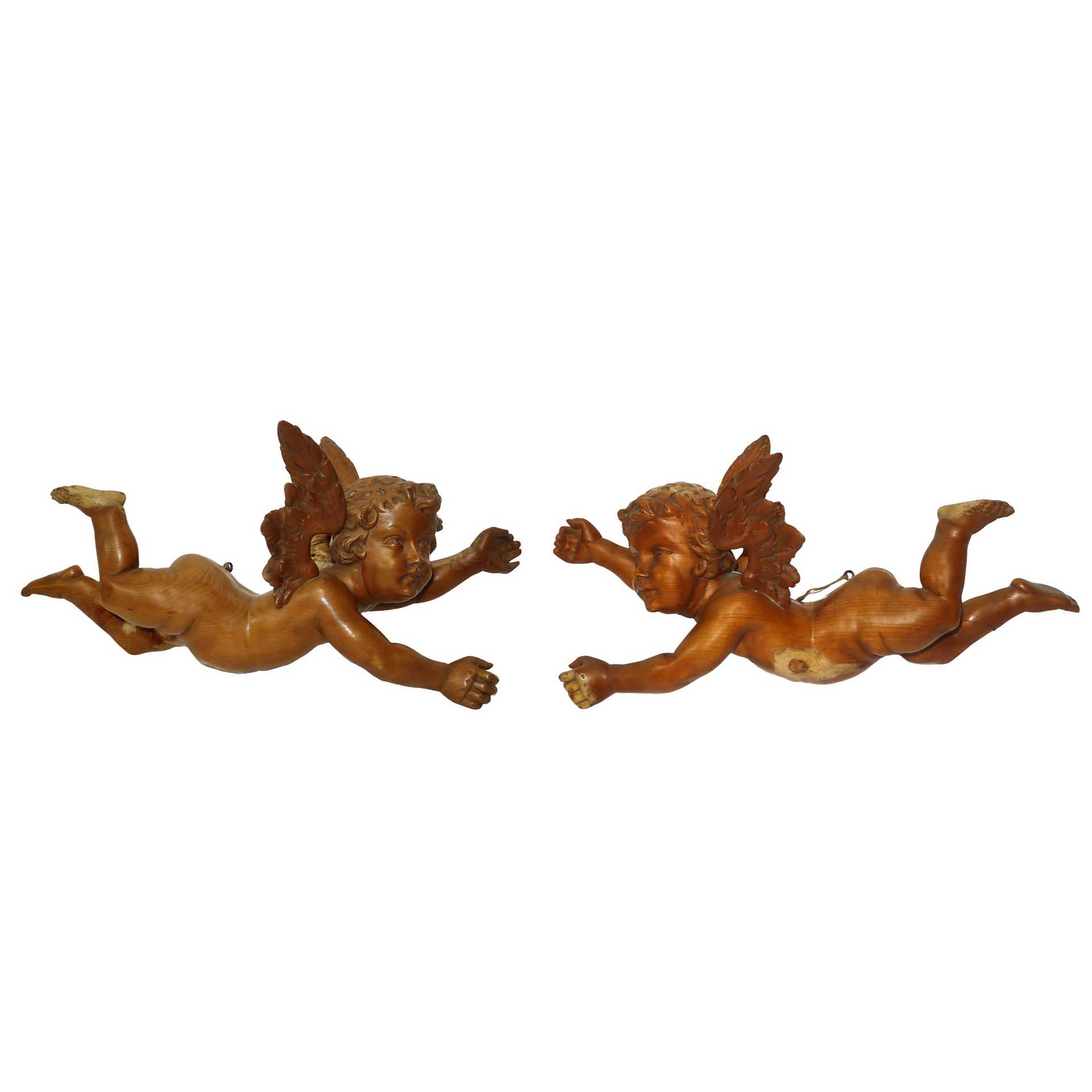 Coppia di angeli in legno scolpito , 19° Secolo cm 46x19,5x21,5 Presenti ganci per appenderli