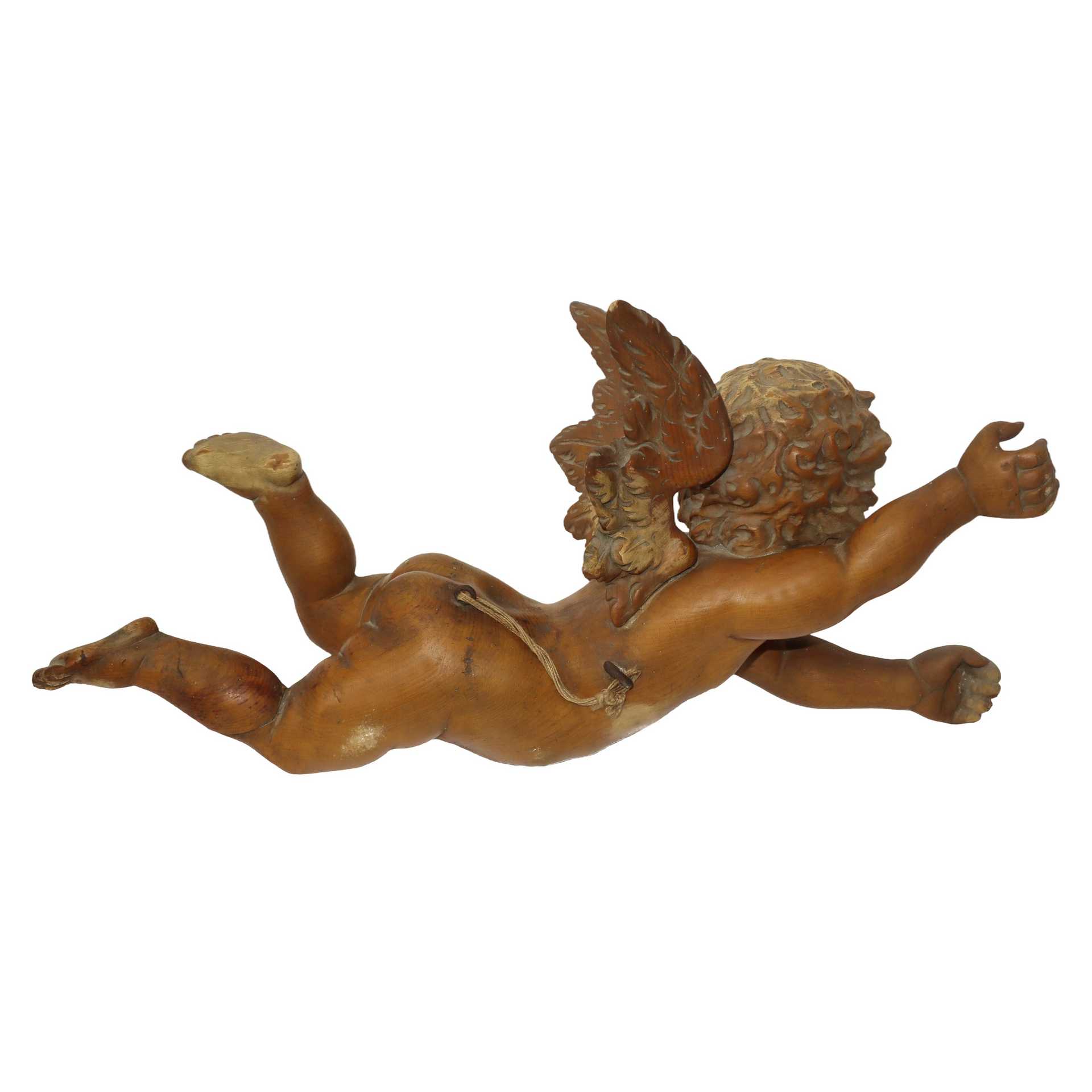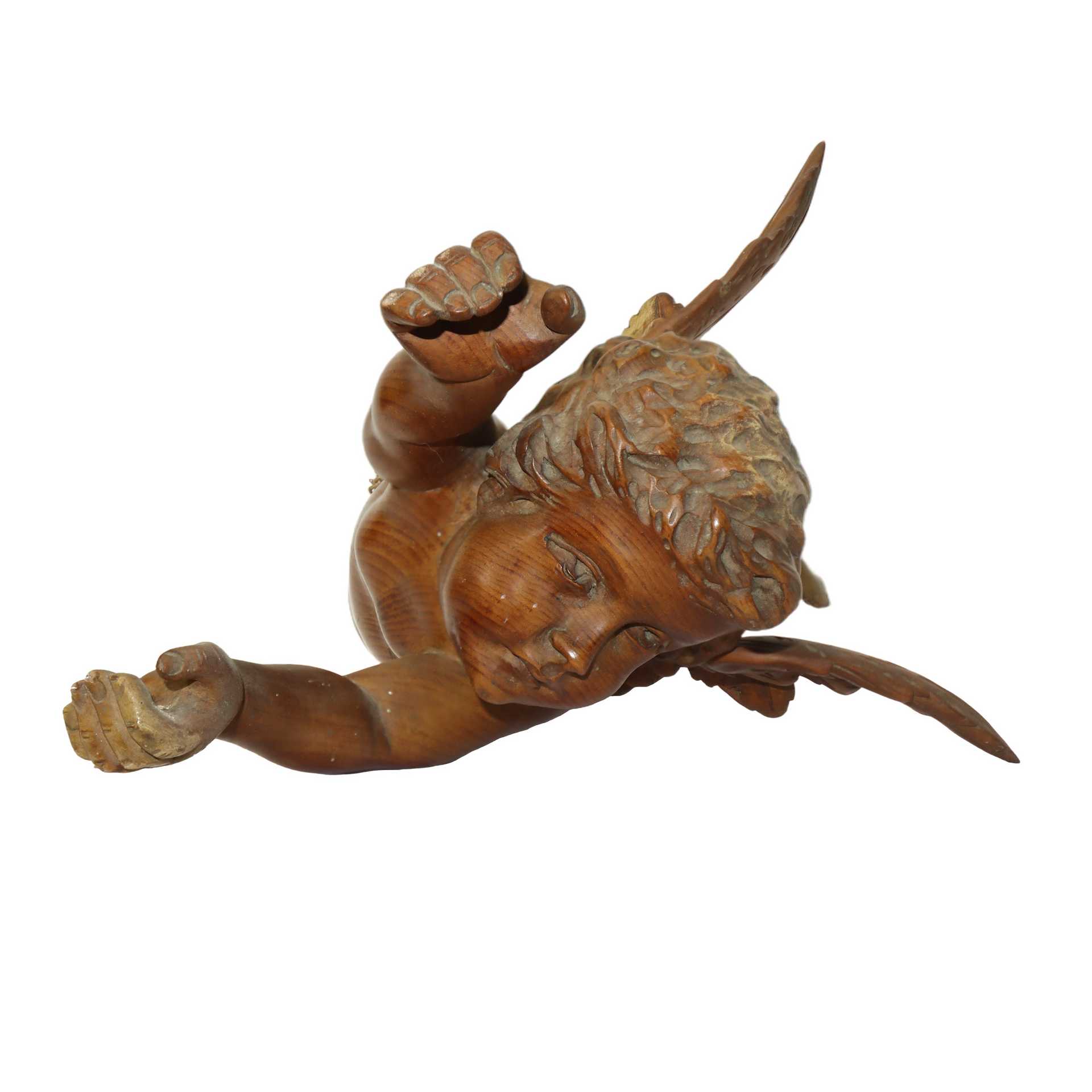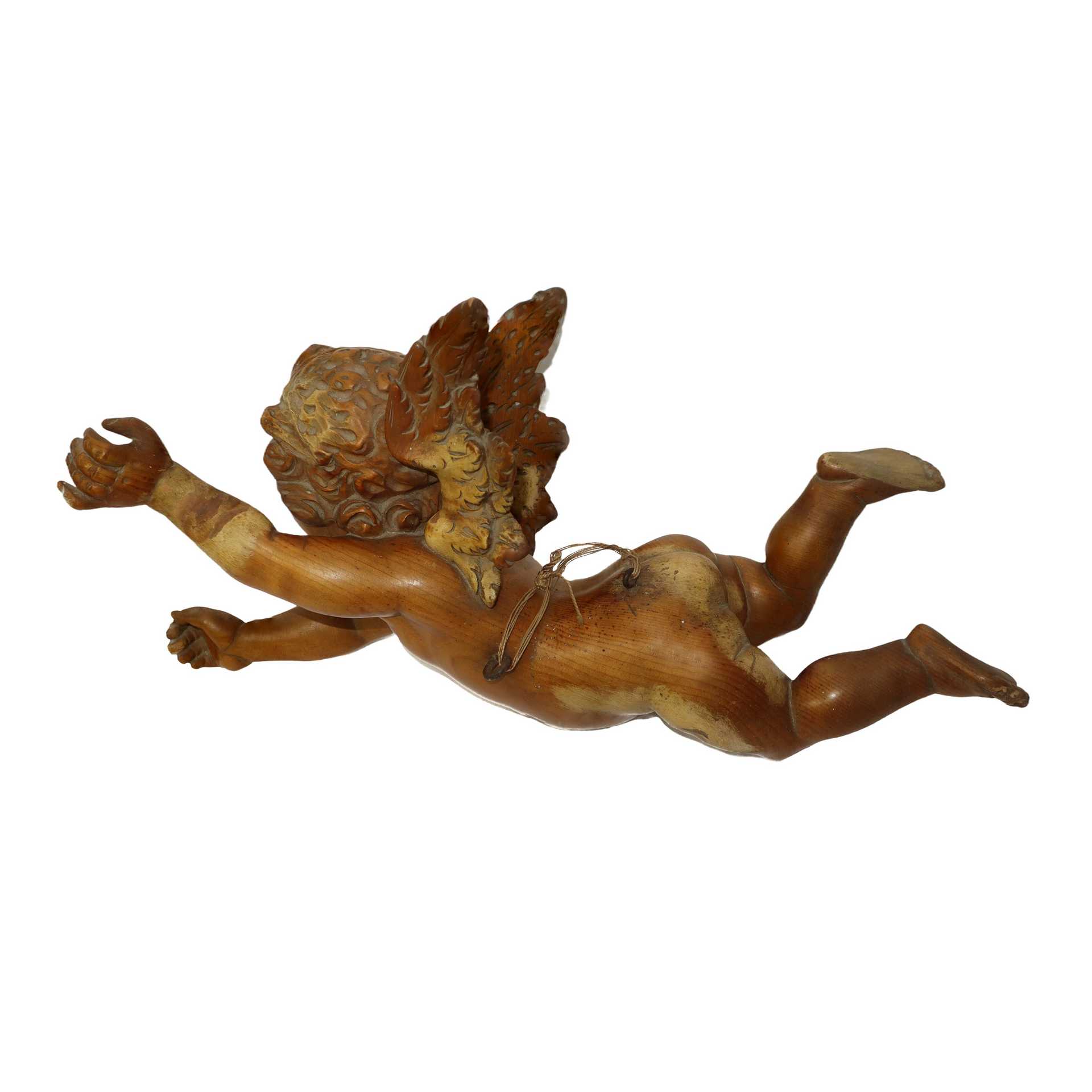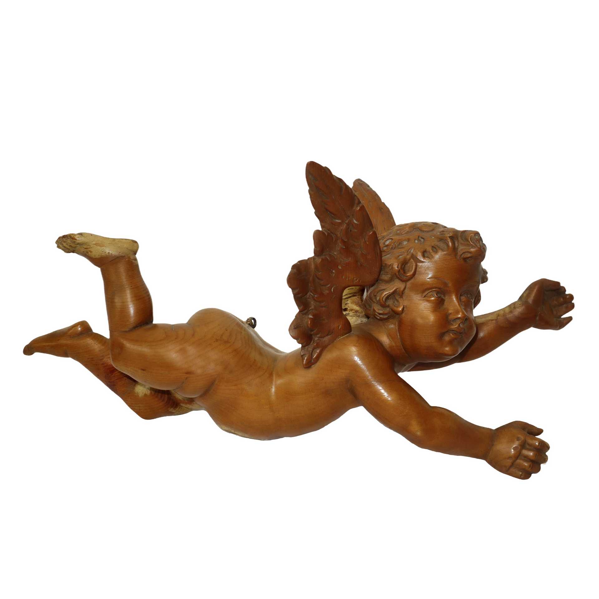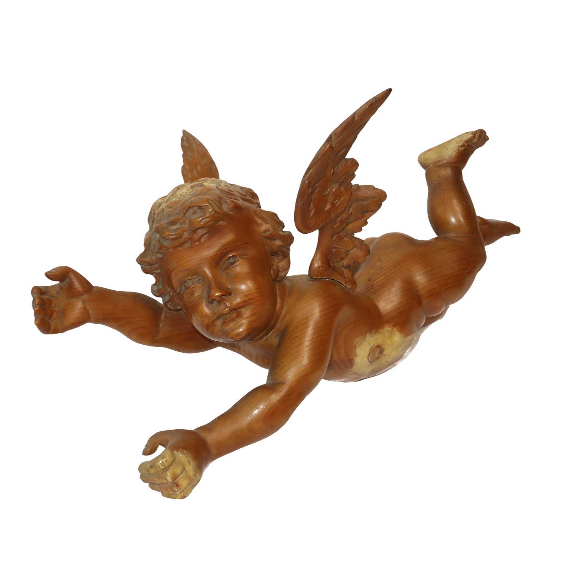 Coppia di angeli in legno scolpito , 19° Secolo cm 46x19,5x21,5 Presenti ganci per appenderli