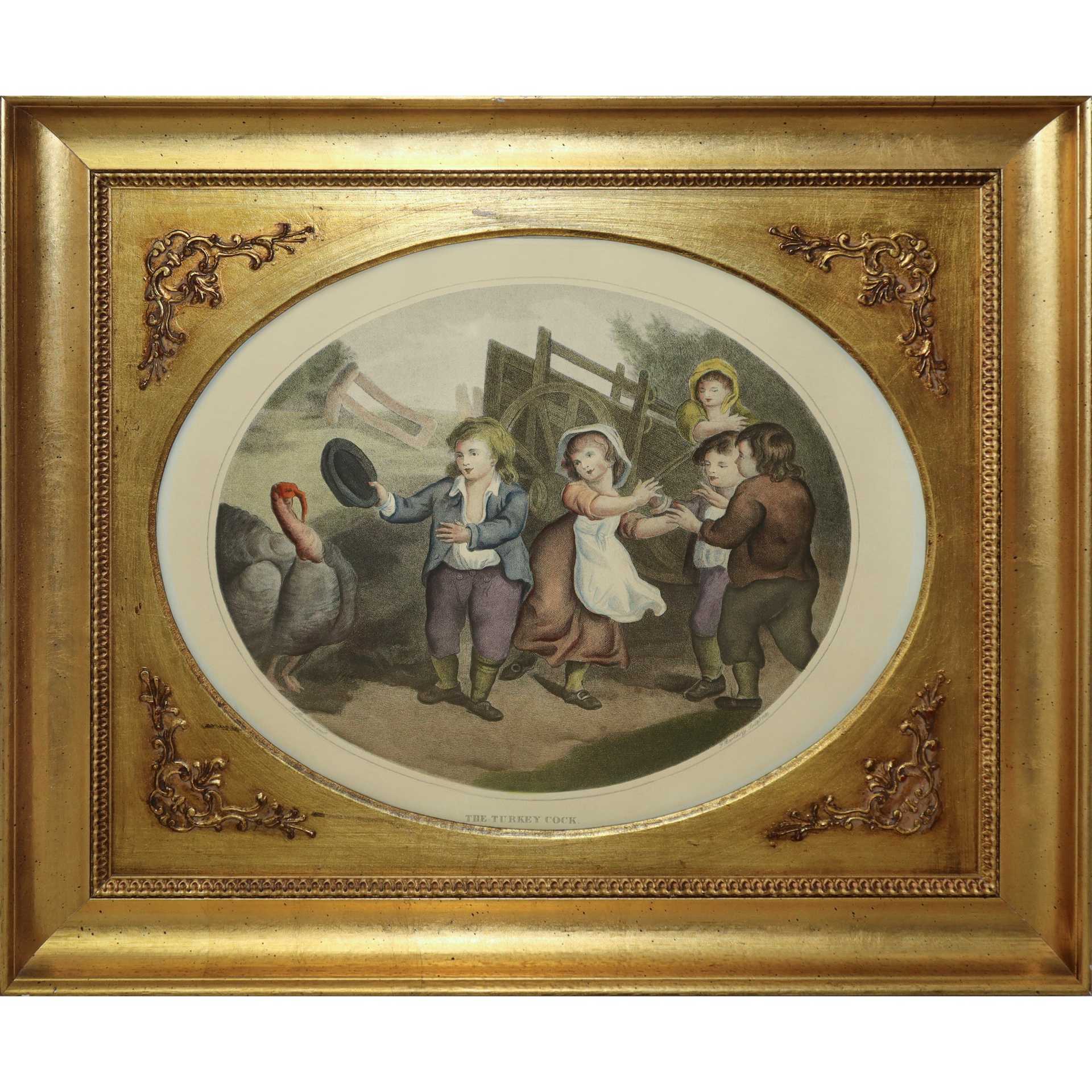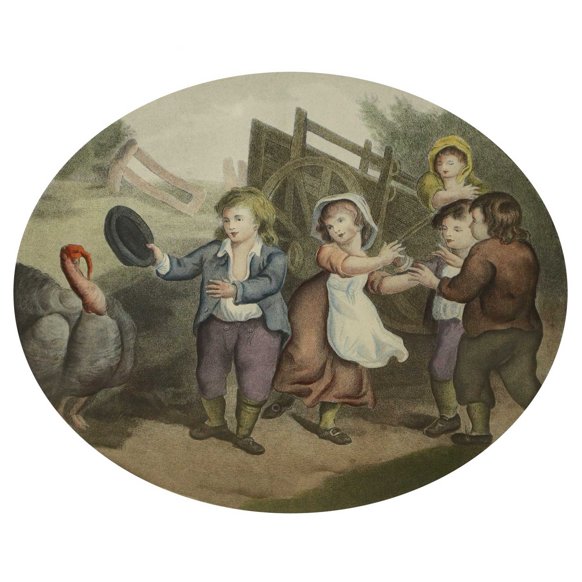 Stampa francese acquerellata W. Hamilton - F. Bartolozzi, entro cornice dorata stile impero, ninetee