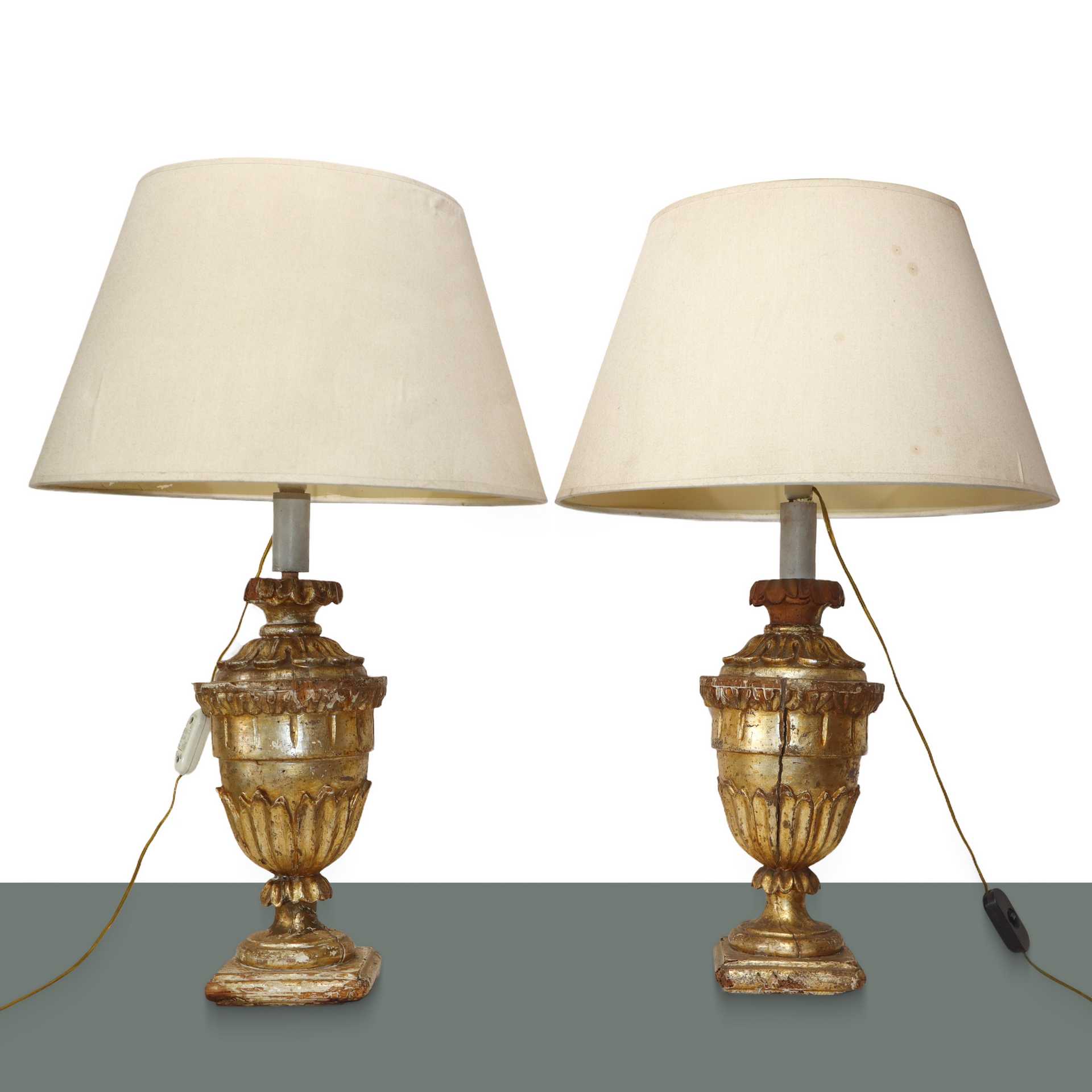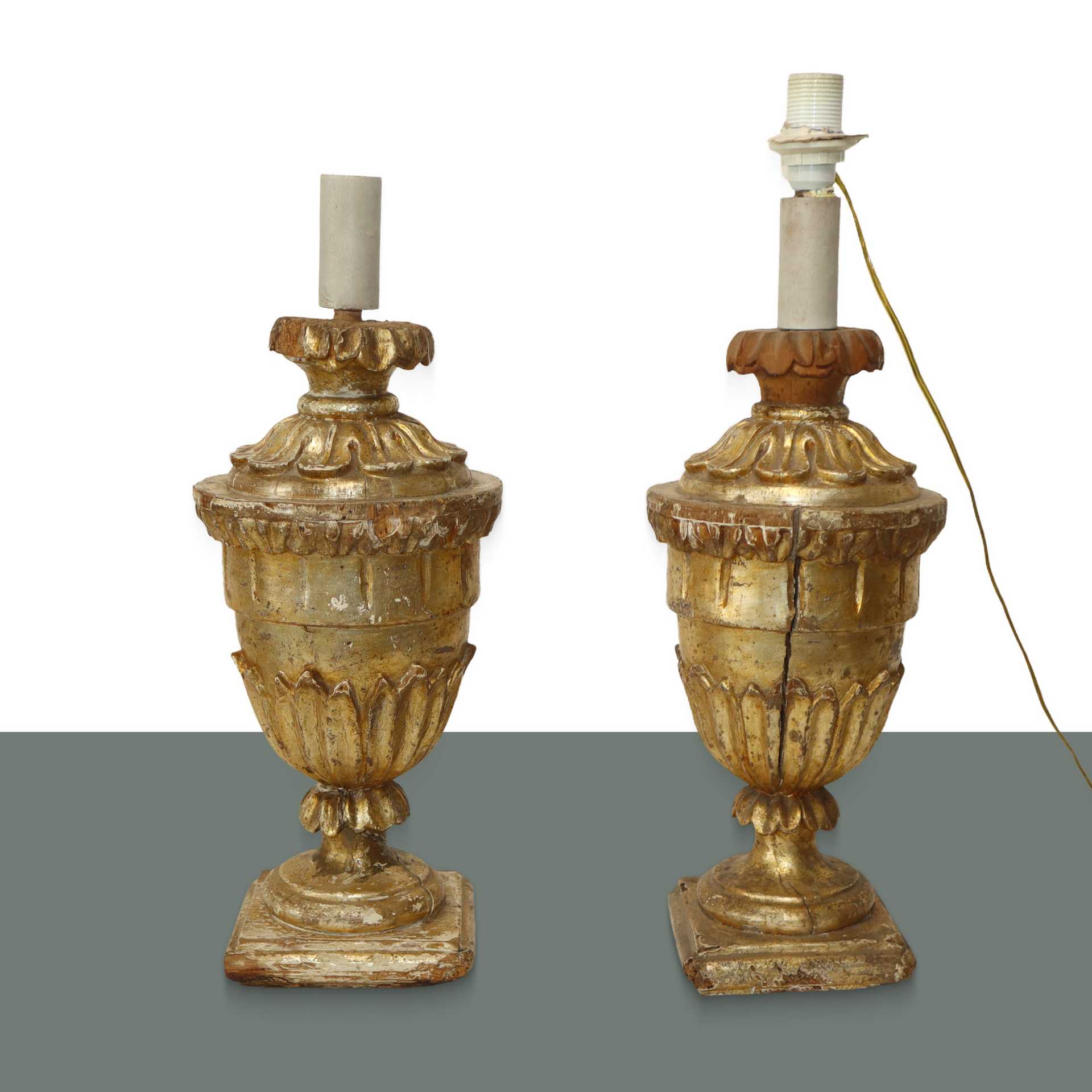 Coppia di lumi con base in legno dorato, 18° Secolo