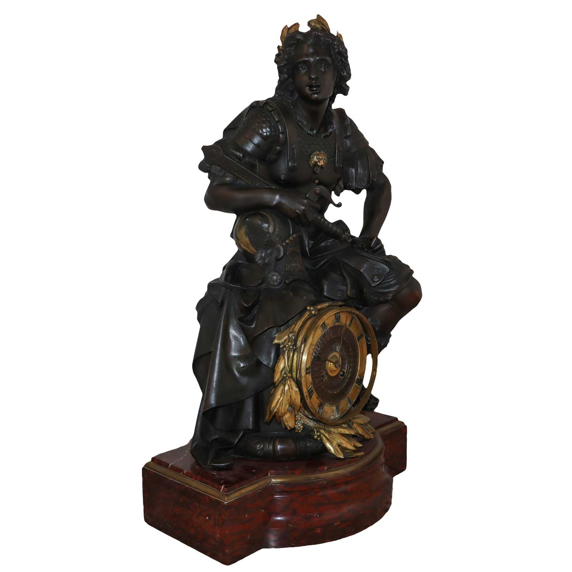 Grande bronzo patinato bruno raffigurante Alessandro Magno con orologio, 20° Secolo