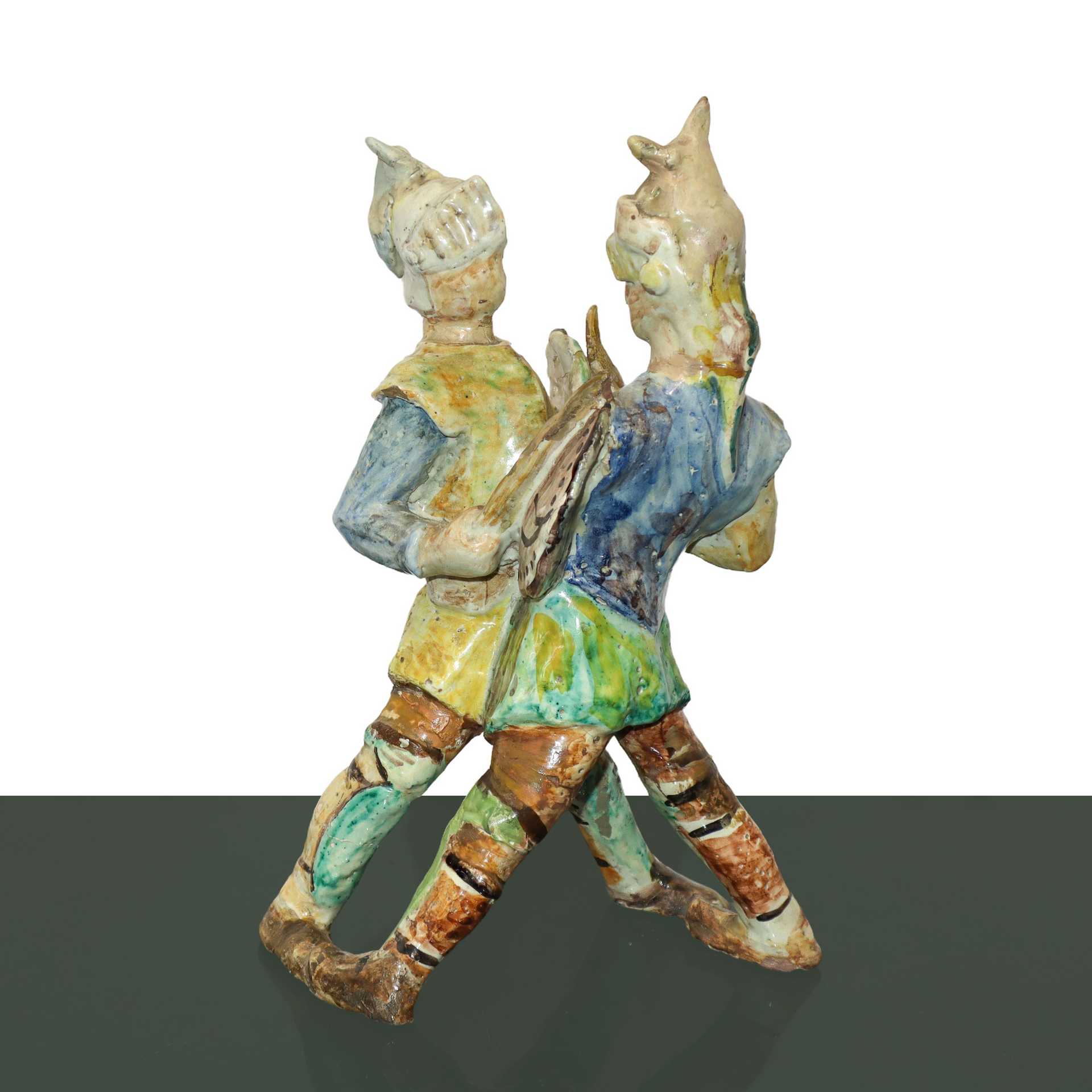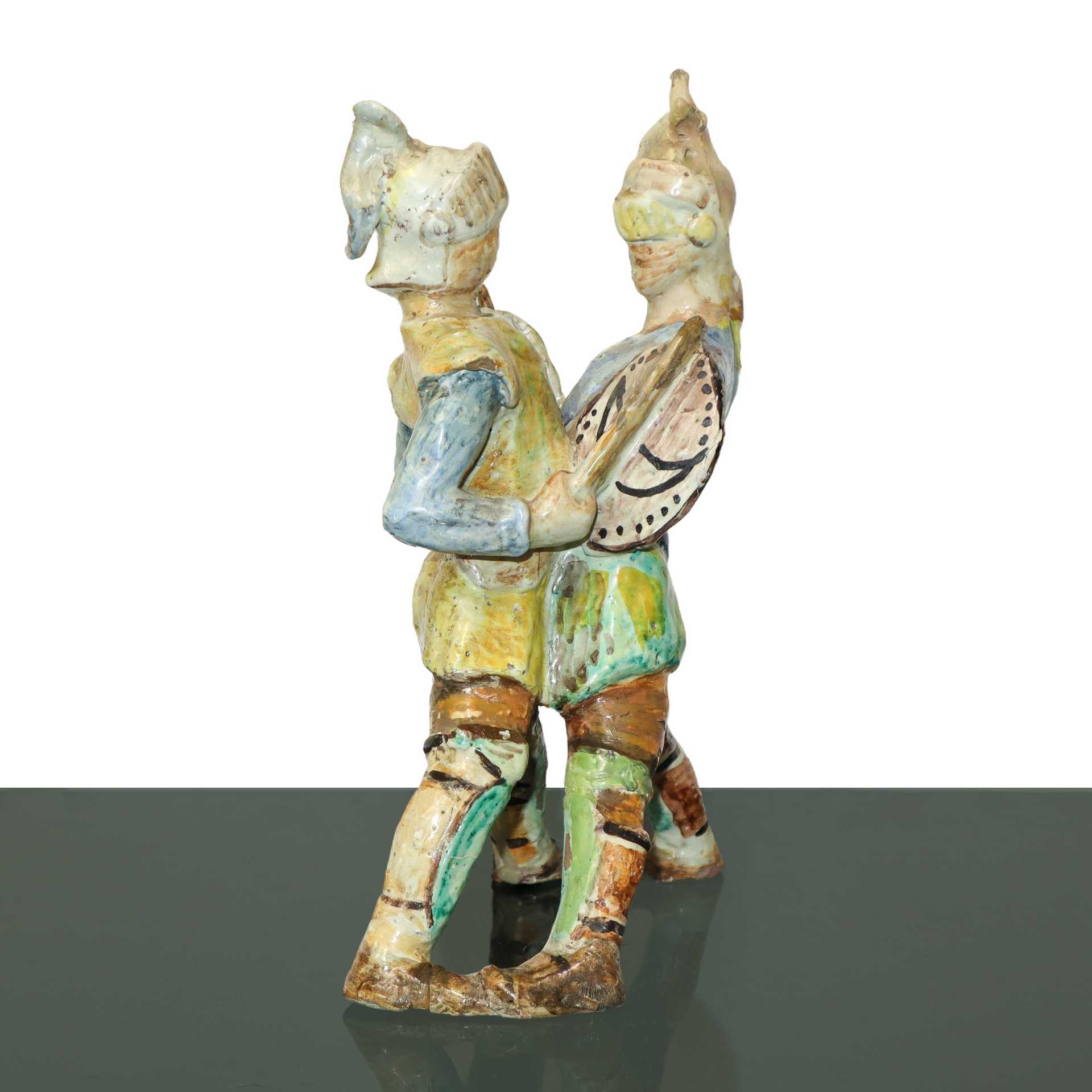 Statuine in terracotta di Caltagirone H cm 30 x 20 Terracotta Coppia di combattenti Cristiano e Sa